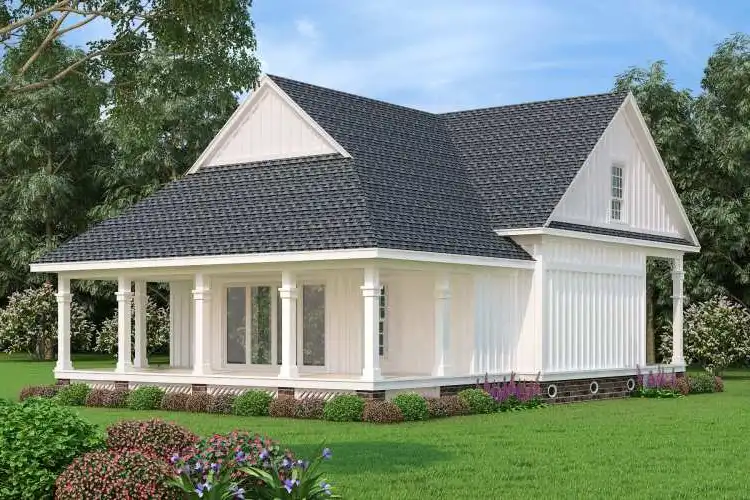 This is a super energy saving home featuring 2x6 exterior walls plus a host of other design techniques designed to save energy but without adding cost to the construction.This authentic raised southern cottage style home requires a very small building site due to the extremely compact layout but the interior is packed with features only found in larger homes. The main level floor plan is open, spacious and airy featuring 9’ ceilings and large windows for maximum view and light. The kitchen is grand and spacious with a buffet serving area and a built-in wine rack. The island has a 42” high raised eating bar and a downdraft cook top. The kitchen and dining areas have exposed beams and easy access to the nearby utility room. The living room has soaring 2 story ceilings with exposed beams and there is wall to wall glass opening to the rear porch. The large wrap around rear porch is designed to take advantage of the slightest breeze and it is sized for rocking chairs. A large front porch is also full depth to provide that down home feel and it is great for spending lazy afternoons, just like at grand mothers home. The stairwell has been designed with railed openings to the living room and dining room eliminating the feel of a dark and un-interesting space. There are built in shelves on each side of the stairwell center wall and great for displaying your favorite photographs or collectables. The master suite is conveniently located on the main level and it has a full bath with a walk-in closet comparable to much larger homes. Upstairs there is a balcony that overlooks the stairwell and the living room below and it has lots of natural lighting provided by the nearby dormer. Two secondary bedrooms and another full bath round out the upper level features of this delightful cottage.