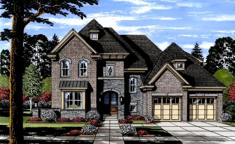 A spacious first floor layout, an open floor plan and functional spaces combine to make this a beautiful family friendly home. The large great room showcases a 10' ceiling height and a beamed ceiling. Family gatherings and holiday entertaining will be fun and impressive in this large informal dining area and spacious kitchen. A 9' island defines the spaces and provides additional seating. Multiple windows across the rear bring in an abundance of natural light and a covered rear porch expands the living space to the outdoors. A large walk-in pantry, a mud room and a home office help maintain order to the first floor. Turnaround stairs lead to a 4 bedroom second floor master bedroom suite that pampers the homeowner with style and luxury. Completing the upper level is a conveniently located laundry room and three additional bedrooms each with a large closet and private bath access. This plan comes with a full basement to offer future additional square footage if needed.