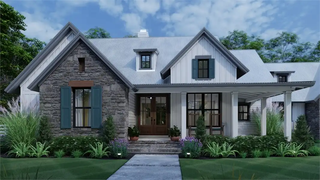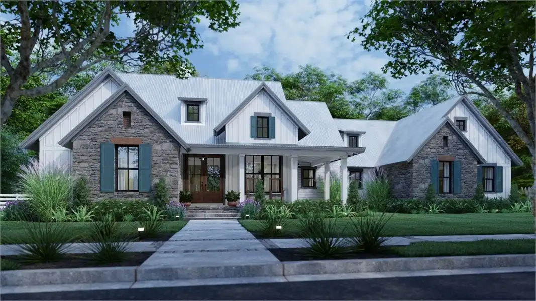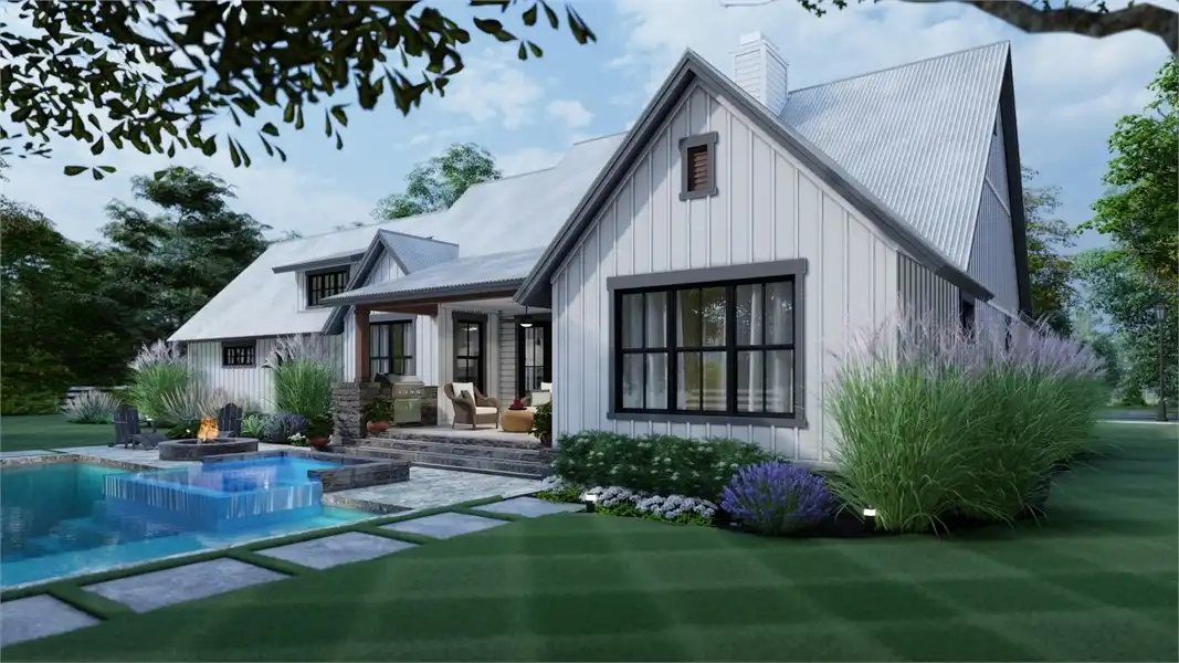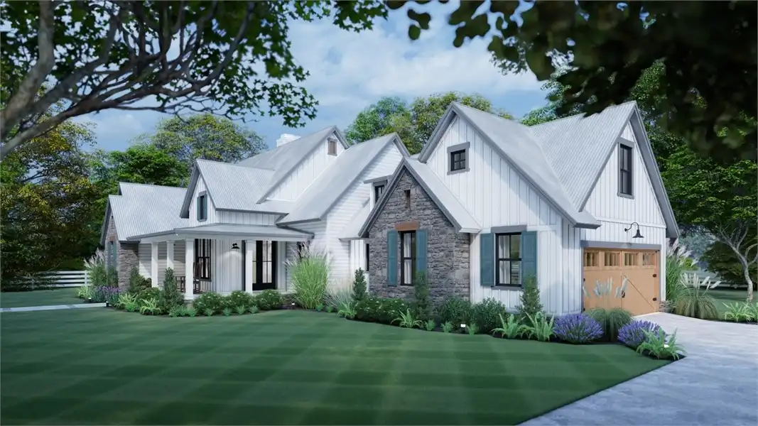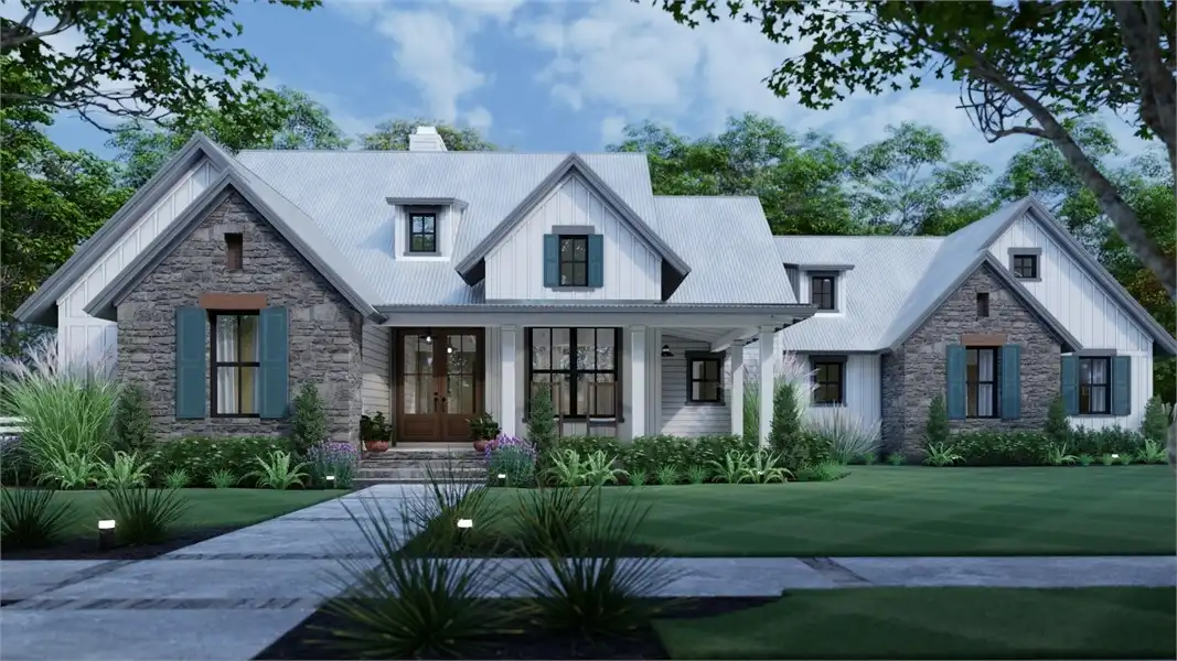 This marvelously designed 3 bedroom Craftsman farmhouse is the perfect blend of luxury and comfort. Family-style bedrooms and 2.5 bathrooms are found in this 1,988 square foot, 1.5-story home with open floor plan. Beyond the thoughtfully designed wraparound front porch, step on to your grand foyer. An open layout immediately greets you, as the entryway is flanked on one side by a large study, and on the other by two auxiliary bedrooms and a full bath. Beyond, the home flows into a spacious vaulted family room, highlighted by a set of French doors, both letting ample natural light in, and opening outward on to the rear covered lanai and grilling patio. Also off of the family room is the island kitchen and dining room with the laundry and 2-car garage just around the corner. The other end of the main floor is home to the master, complete with its own private entrance out to the lanai, as well as a gorgeous master bath and a large walk-in closet. Upstairs is where you’ll find a hidden gym, in the form of a great sized bonus room and a full bath.