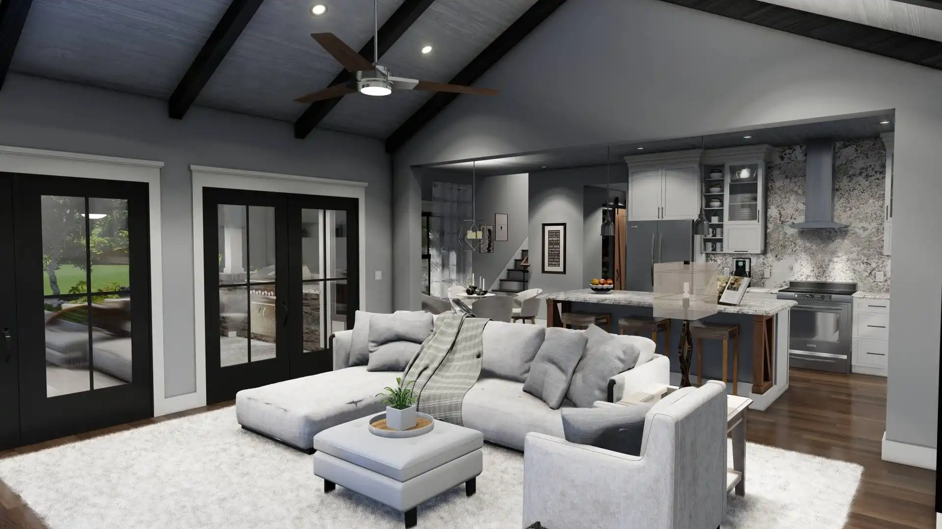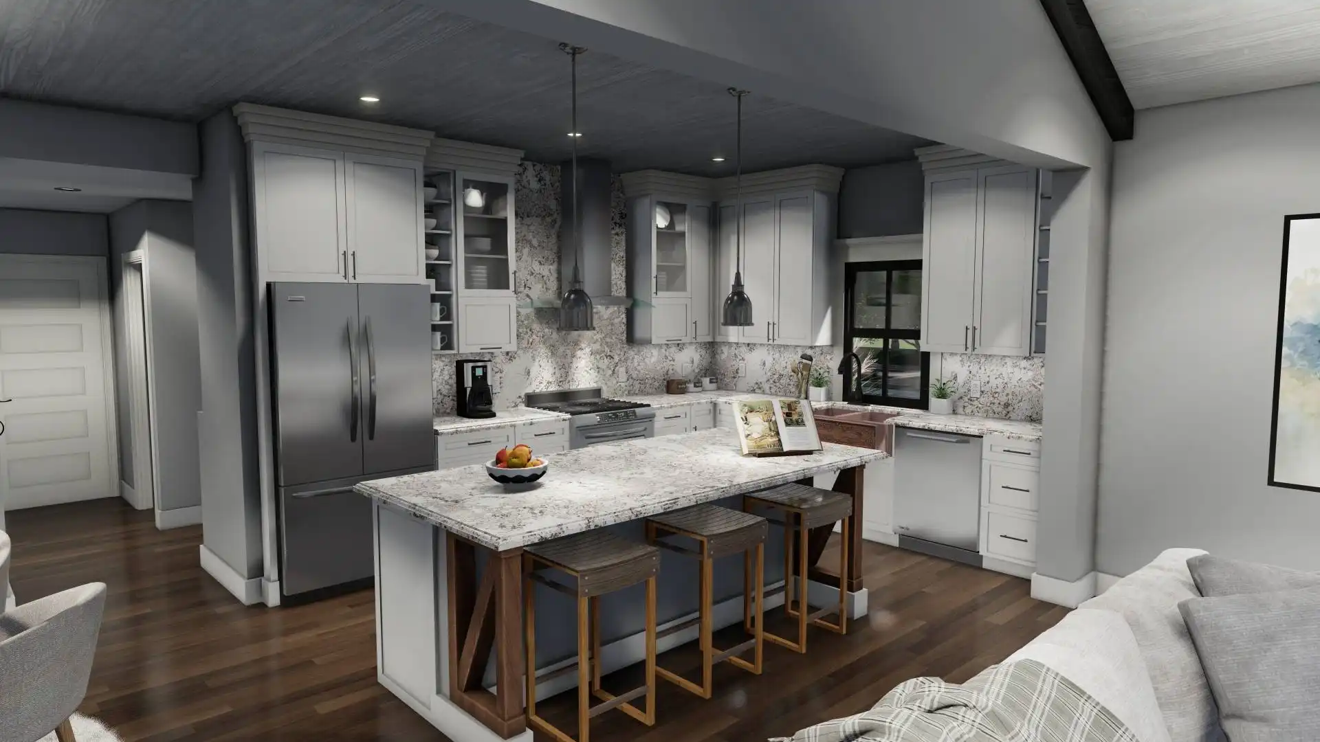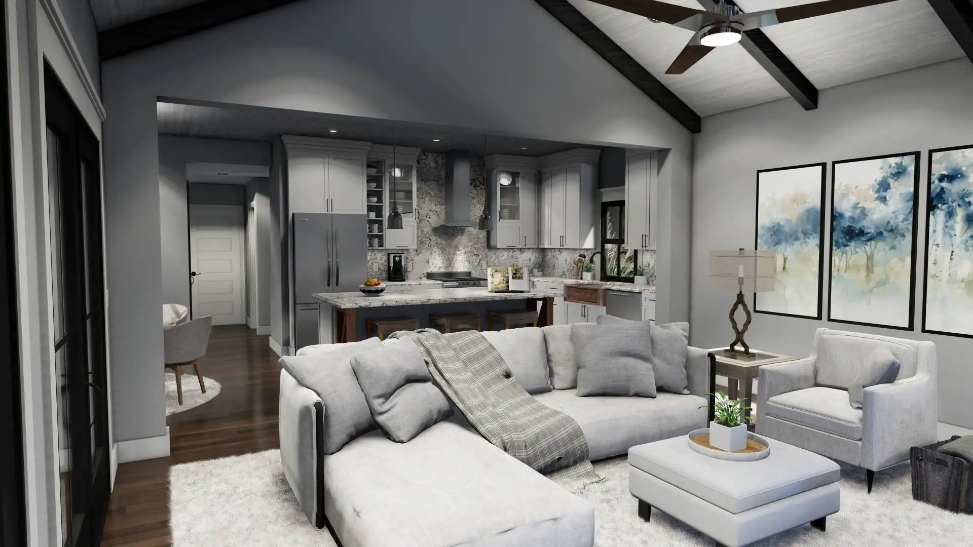 This marvelously designed 3 bedroom Craftsman farmhouse is the perfect blend of luxury and comfort. Family-style bedrooms and 2.5 bathrooms are found in this 1,988 square foot, 1.5-story home with open floor plan. Beyond the thoughtfully designed wraparound front porch, step on to your grand foyer. An open layout immediately greets you, as the entryway is flanked on one side by a large study, and on the other by two auxiliary bedrooms and a full bath. Beyond, the home flows into a spacious vaulted family room, highlighted by a set of French doors, both letting ample natural light in, and opening outward on to the rear covered lanai and grilling patio. Also off of the family room is the island kitchen and dining room with the laundry and 2-car garage just around the corner. The other end of the main floor is home to the master, complete with its own private entrance out to the lanai, as well as a gorgeous master bath and a large walk-in closet. Upstairs is where you’ll find a hidden gym, in the form of a great sized bonus room and a full bath.