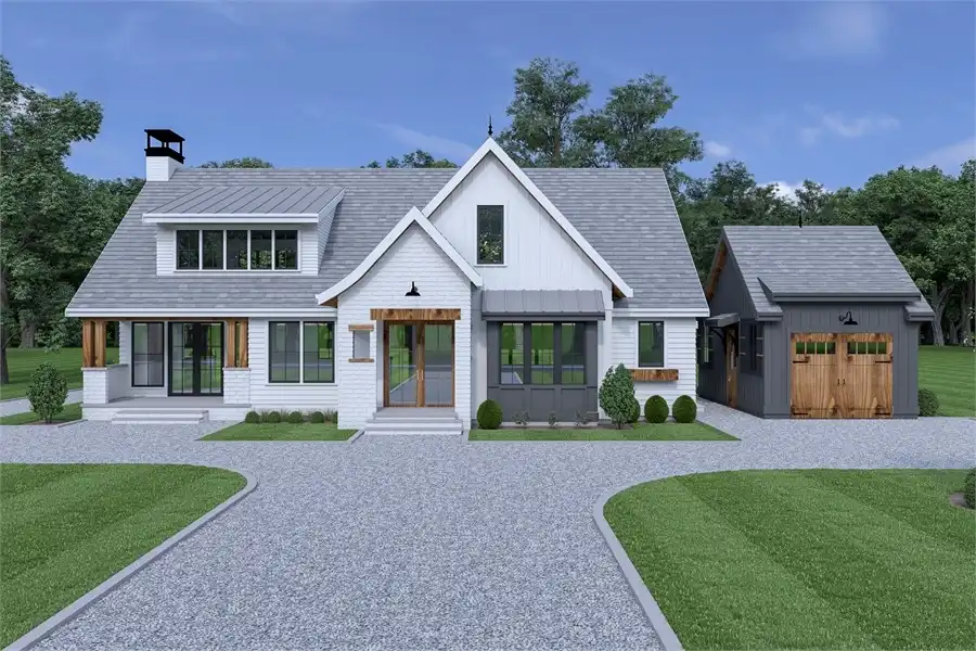 With 2794 square feet of space, four bedrooms, three bathrooms, and the ability to fit just about any lot thanks to its multiple design options, this farmhouse plan is something special. This versatile family home comes with the ability to have its lovely open floor plan with either in attached or detached garage. Such flexibility is rare with many other plans! Plus, you will never grow tired of the timeless and classic farmhouse style that is found throughout. The main floor is both open and accessible for people of all ages. Enjoy relaxing in your large family room or out on the covered back deck. Or maybe cook up a gourmet dinner in your kitchen with its stunning island and convenient walk-in pantry. Or maybe, you want to get some work done in the privacy of the home den/office. And finally, after the day is done, retreat to your master suite which is conveniently located on the first floor, along with a spa bath an impressive walk-in closet. For the kids and guests, explore the upstairs space which is home to the auxiliary bedrooms and bathrooms, as well as a large open air loft and a cozy reading nook.