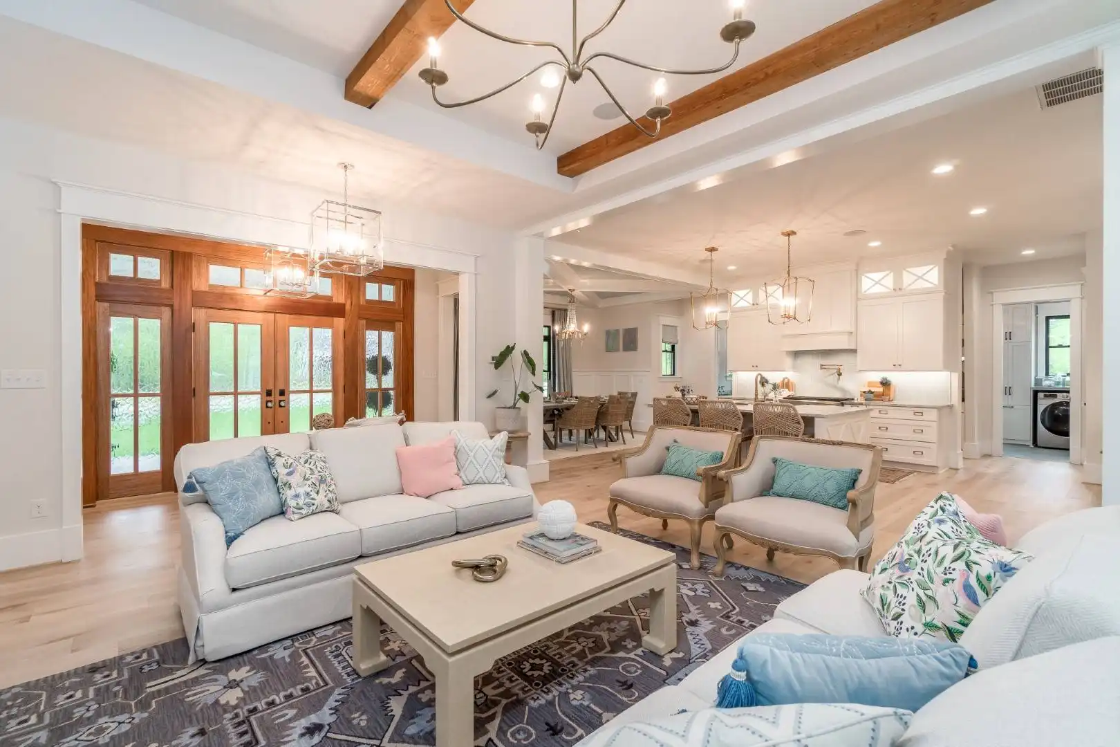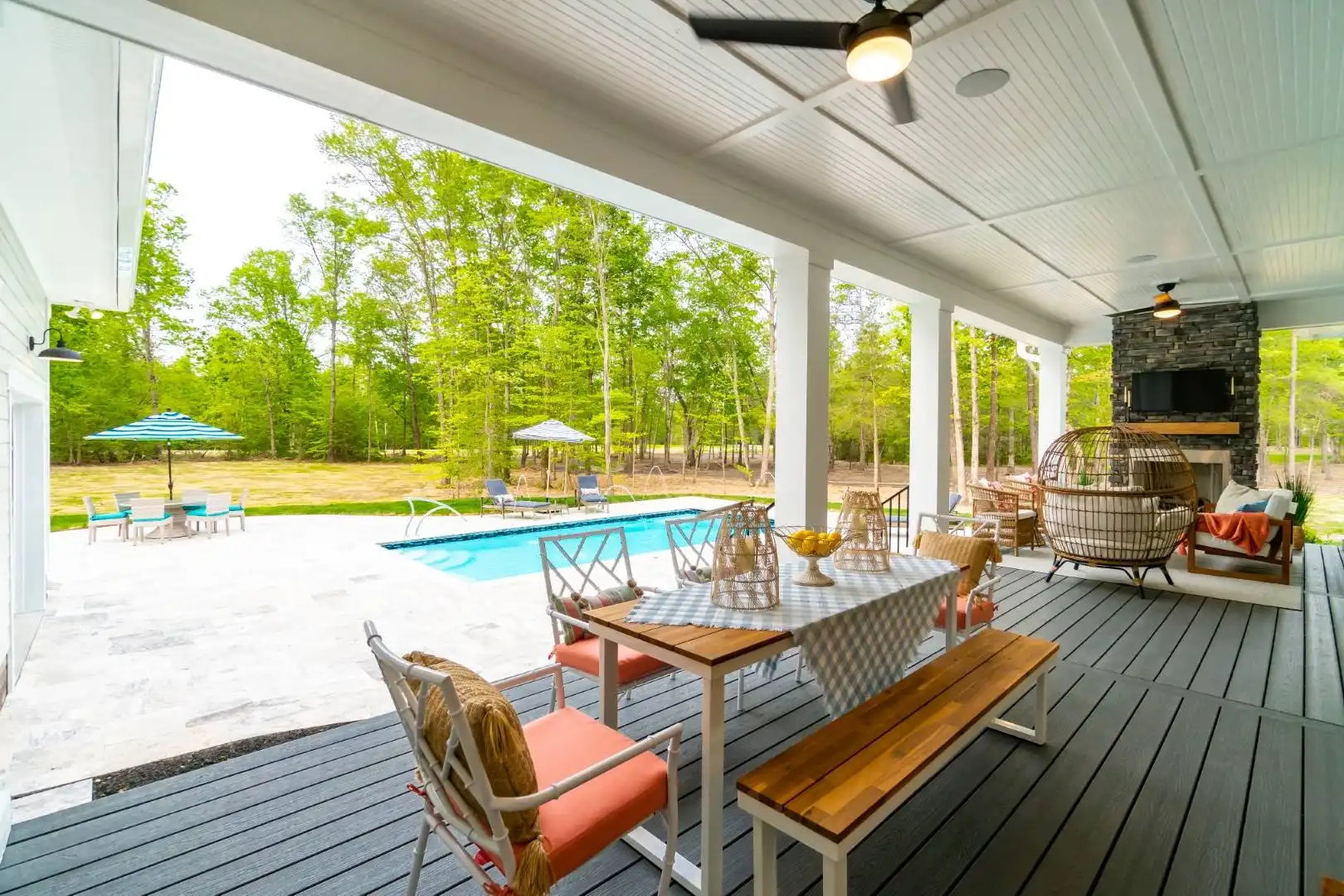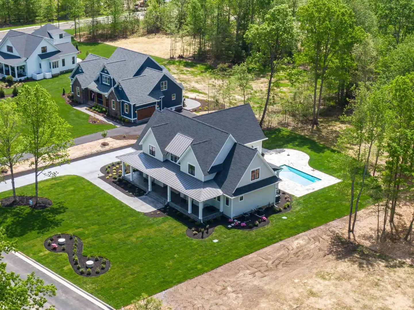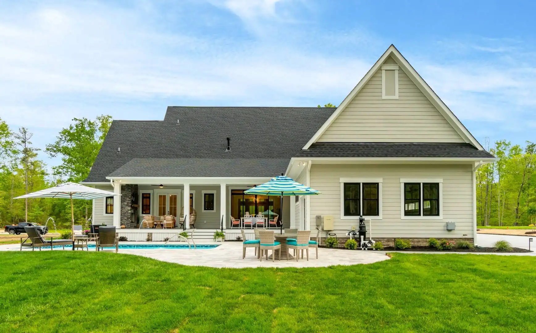 An absolutely stunning amount of style and welcoming curb appeal is only the beginning with this impressive farmhouse plan. Inside you'll discover an open and totally functional 2-story layout consisting of 3,952 square feet and offering spaces such as 4 large bedrooms. Check out the open concept design that is great for entertaining. This means that your kitchen and its walk-in pantry and separate prep kitchen are right next to the dining room and open family room. And check out that impressive outdoor space that is perfectly designed for a pool or large yard. The master is conveniently on the first floor as well, providing a large spa bath and walk-in closet too! Upstairs is all of the remaining bedrooms and a great space for family game night!