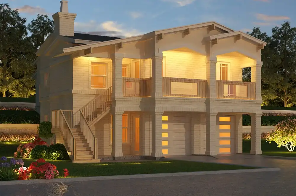 If you love views, look no further than this gorgeous classic plan which is perfectly designed to overlook a lake front or a mountainside. A 2,159 square foot layout is just the beginning of this impressive 3 bedroom plan. The lower level features a 2-car drive-under garage with dedicated shop space and plenty of storage. There are also 2 private bedrooms, great for the kids or guests. Meanwhile the main floor has all of your general living spaces, including the master suite which is a private oasis of relaxation thanks to its spa bath. You'll also enjoy the living room with the nearby family room with the dining room and galley kitchen around the corner. Finally, kick back and relax on either one of this home's covered decks, perfect for year-round enjoyment!