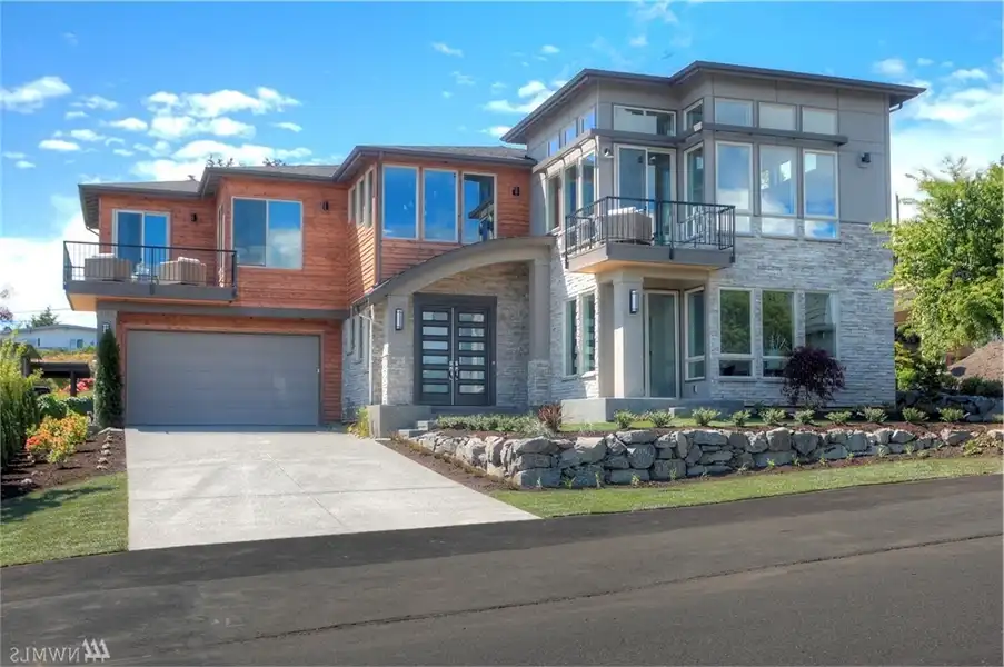 A contemporary marvel, you won't soon forget this gorgeous modern home. Spectacular amounts of curb appeal are define by striking lines and contrasting design elements. Take note of the wonderful windows that are found around the entire 3,310 square foot home, flooding the interior in natural light. As the front entryway welcomes you in, also notice the convenient addition of an attached 2-car garage. The first level is home to 3 auxiliary bedrooms and a rec room, making it perfect for guest and kids alike. All of the main living spaces are found on the second floor, meaning that you get great views all year long. This level joins the spectacular vaulted family room, with the dining room and island kitchen. Also upstairs is the large master bed and bath, with the bonus addition of a private covered deck!