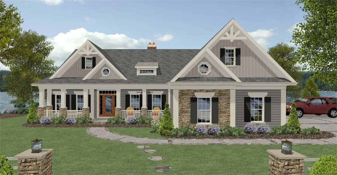The perfect option for a vacation home or a year-round dwelling, this 2-story family plan has plenty of space to enjoy now, with options to expand in the future! 2,885 square feet offers 4 bedrooms and 4.5 bathrooms, including the totally accessible first-floor master suite with its spa bath, walk-in closet, and nearby private office. In fact, every bedroom in this home has its own en-suite, a great option for kids and guests alike. You'll also enjoy the totally open concept design which joins spaces such as the open family room and formal dining, with areas like the eat-in kitchen and covered 2-story deck. And check out the convenient storage capabilities of the 3-car garage and unfinished walk-out basement level!