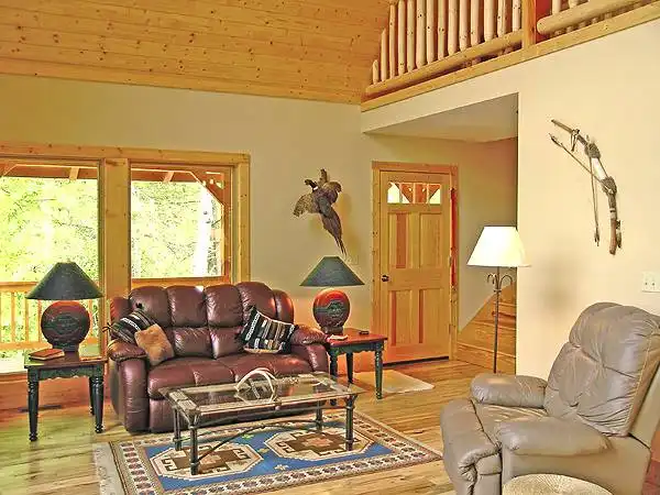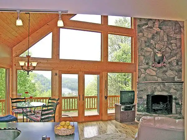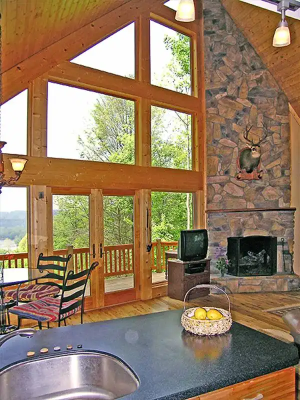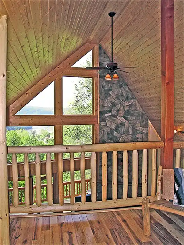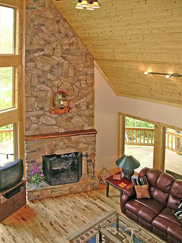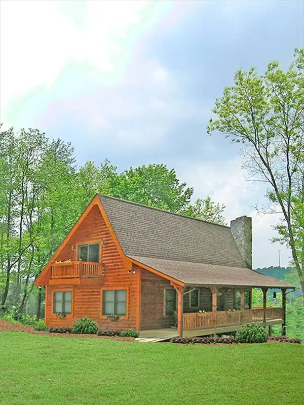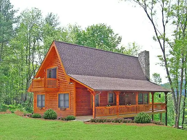 Perfect as a vacation home or a year-round abode, this log home is one of our best-loved house plans. With a porch or deck on three sides of the floor plans, views are enjoyed in virtually every direction. Inside, the Great Room boasts a high vaulted ceiling and a crackling fireplace. Two possible master suites and a railed balcony round out the homes 1,601 square feet. As home plans go, its hard to find one that takes better advantage of scenic views.