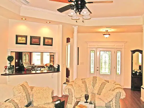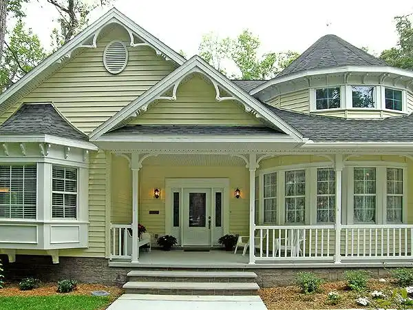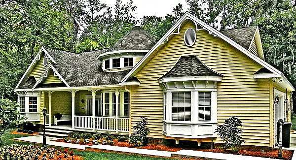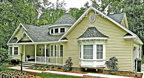 A whole new category of storybook home plans could be inaugurated by this winsome design. With fancy detailing, a cute front porch and an eye-catching turret, this is one of those house plans you wont soon forget. Inside, architecturally sound design makes for minimal wasted space on the 1,800-square-foot floor plans. The dining room may be the highlight, with its multiple windows and curved shape. Step out back after dinner for some stargazing on the second porch.