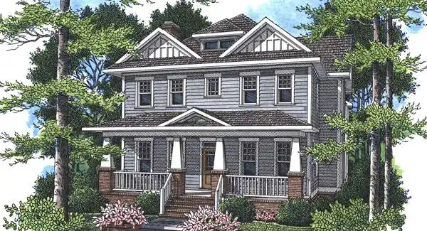 Reminiscent of Grandma's neighborhood, this four-bedroom house plan would look great on any lot. Inside, the parlor-style living room or study is a peaceful place for conversation or reflection. Larger groups may gather in the spacious family room.