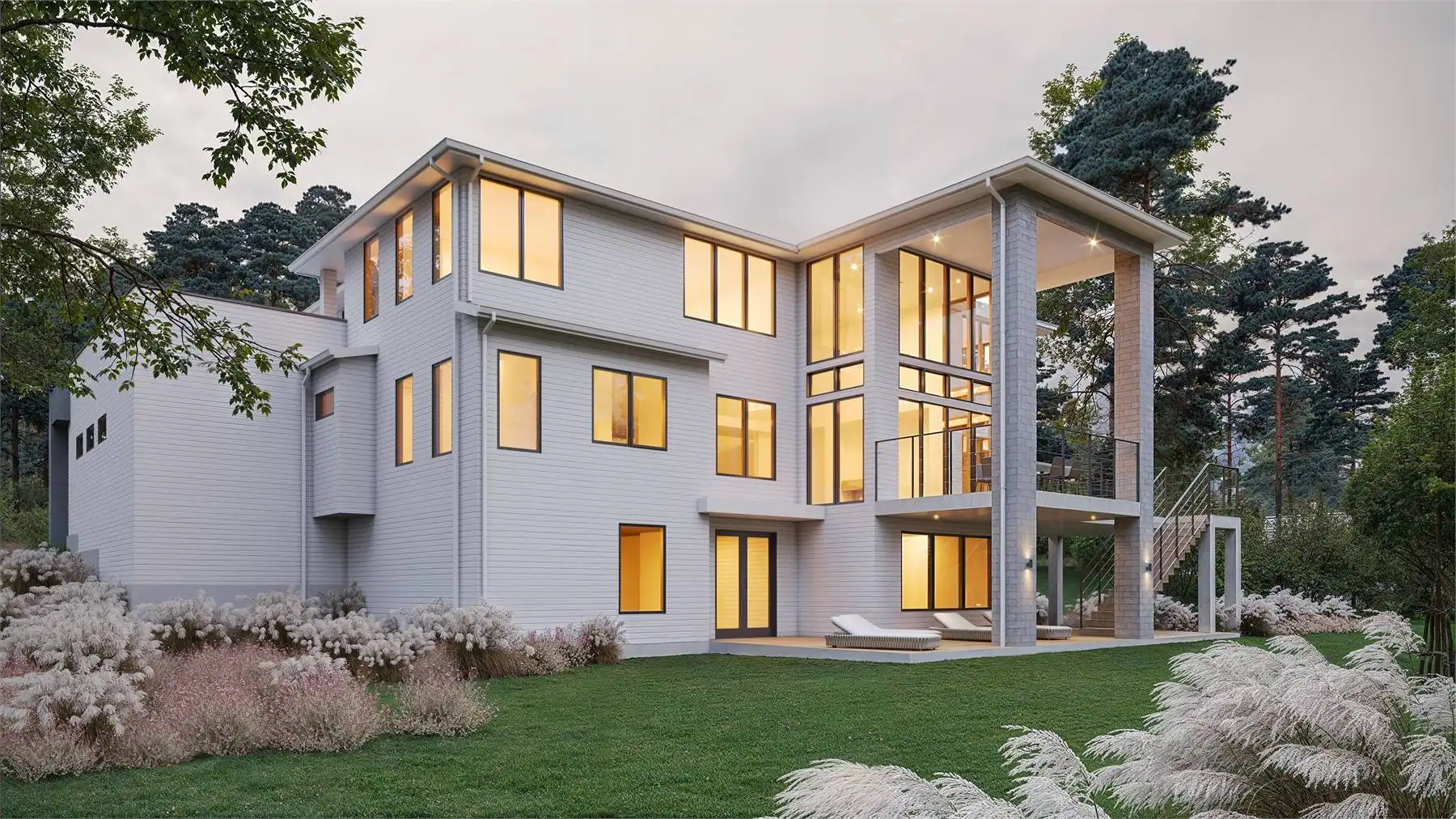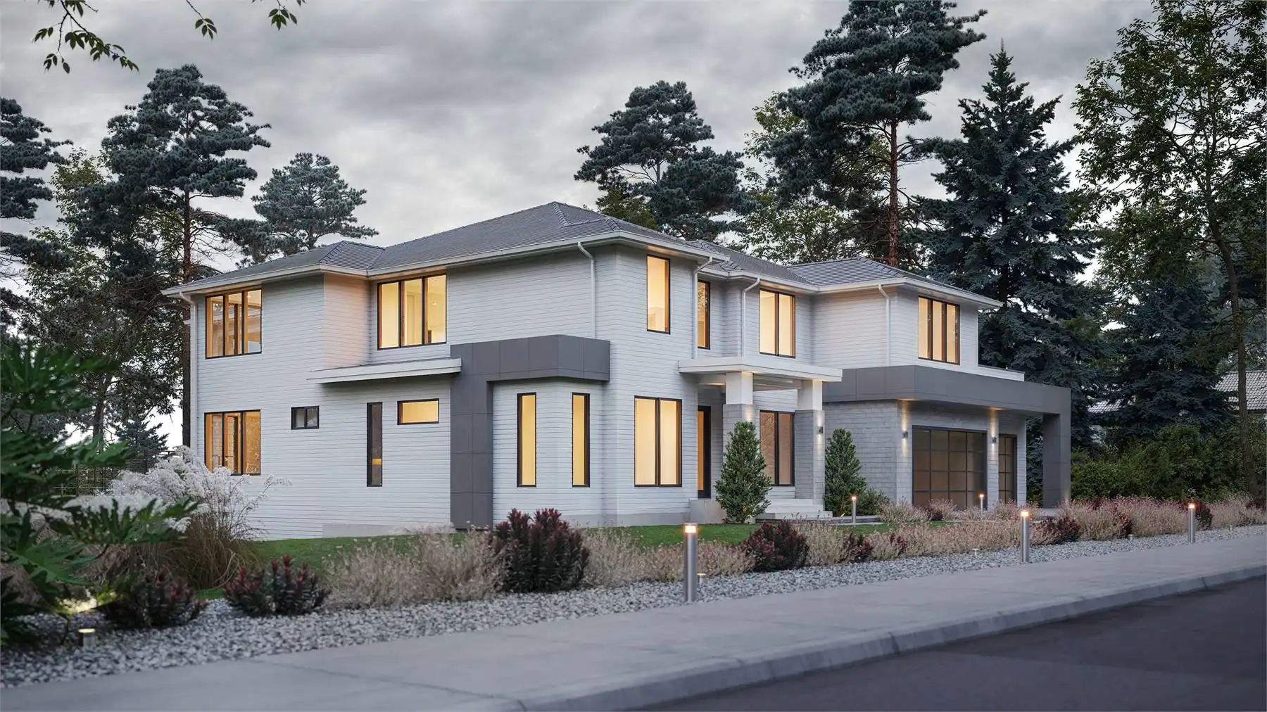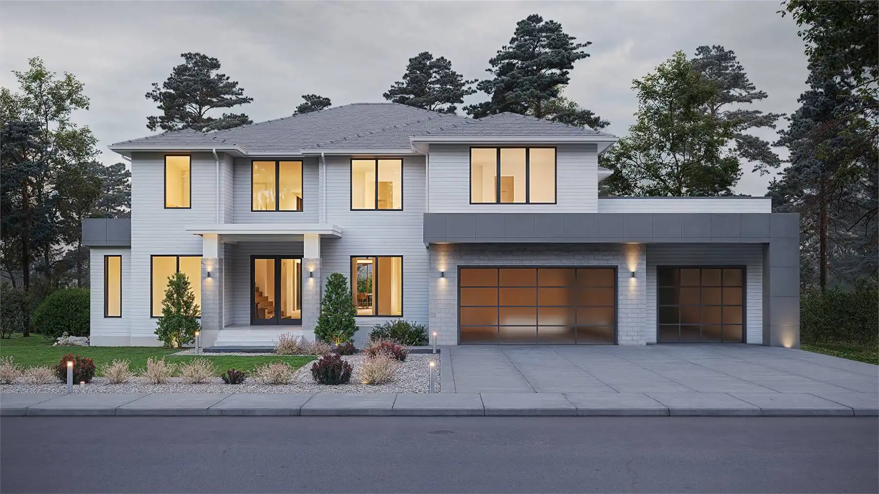Need an amazing modern home for a view lot? Consider House Plan 8035 with its amazing 5,875-square-foot layout across three levels--two stories and the finished basement. Step inside and you'll see why this house is make for views, because the two-story great room has floor-to-ceiling windows. The main level also offers a den, flex space, a bedroom suite, a prayer room, and a spacious island kitchen with a walk-in pantry and spice kitchen. Upstairs, the primary bedroom suite has a five-piece bath and access to the deck over the garage. The bonus room also connects to this deck. There are two more bedrooms, two more bathrooms, and the laundry room on the second story as well. Finally, the basement has a full one-bedroom apartment with living space, a kitchen, and laundry. It can be accessed through the staircase in the mudroom or outside, so it would be perfect for guests, in-laws, or renting out!