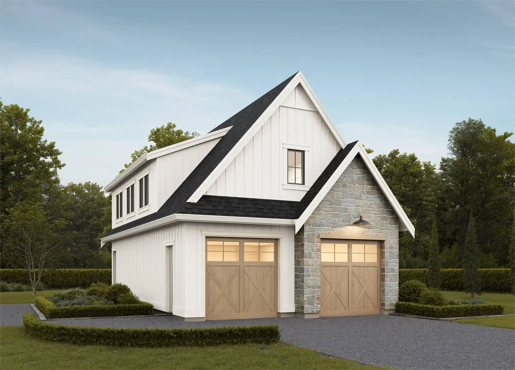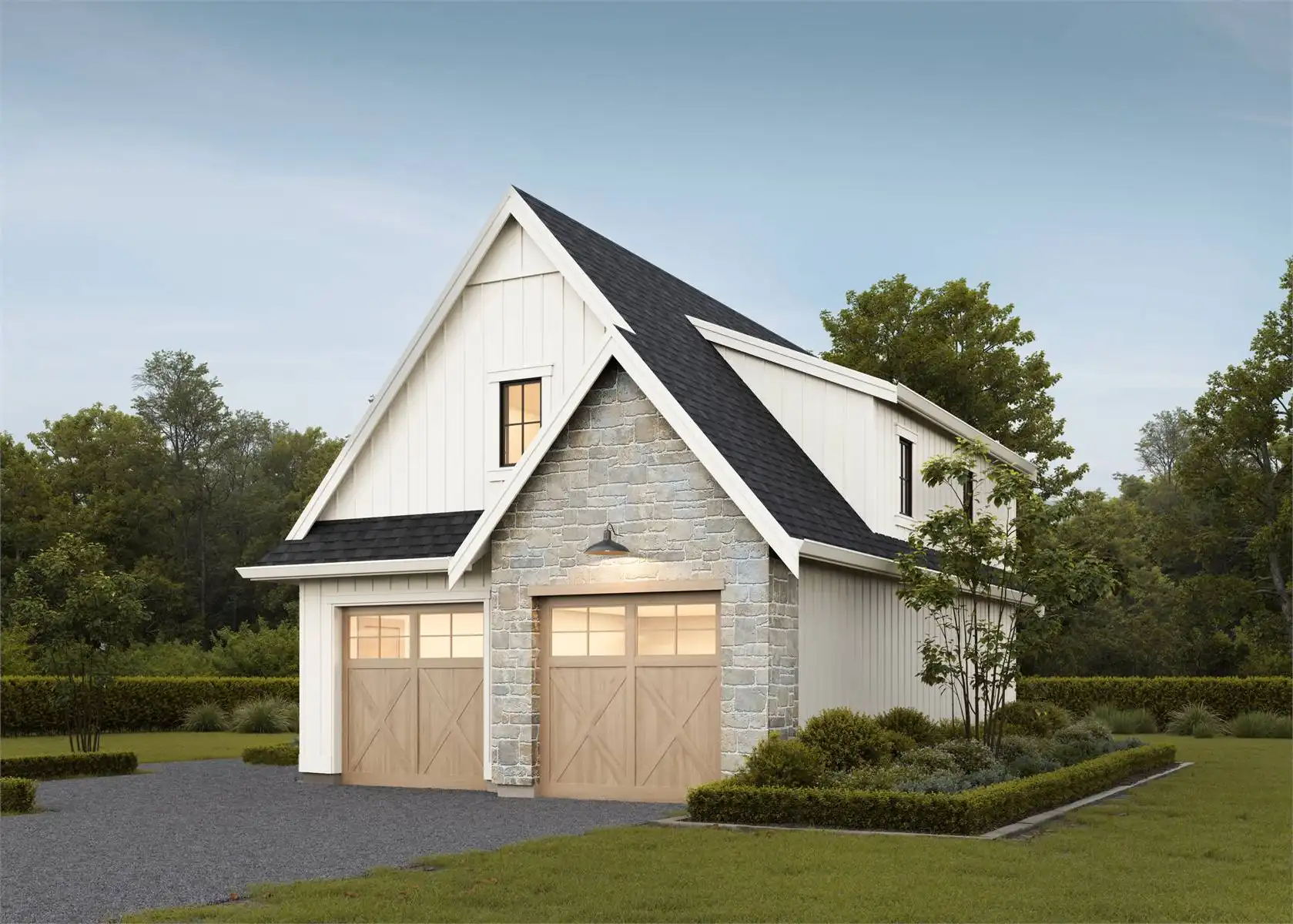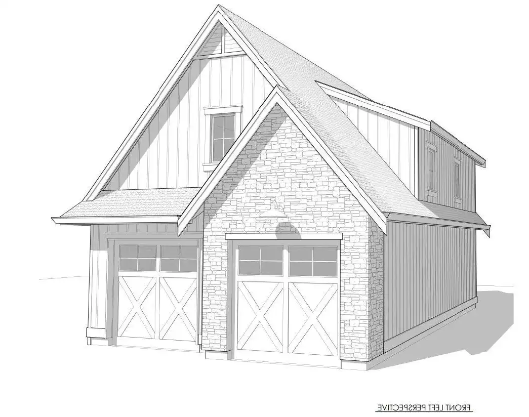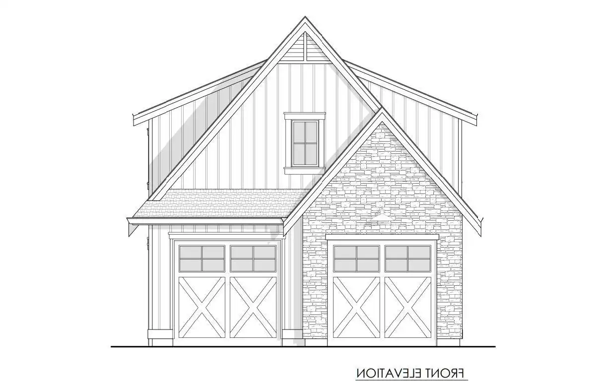 If you're looking to add to your property, take a look at House Plan 8062 and imagine the possibilities! This country-style garage offers parking for two as well as an 890-square-foot second story that you can leave unfinished or finish into a full apartment. The apartment includes spacious open living with an island kitchen, two bedrooms, and a hall bath. There's also a laundry closet for convenience. You could enjoy this space yourself or rent it out as an ADU!