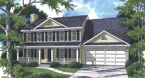 Striking gables give this two-story home design plenty of style. Beyond the welcoming porch, guests are shown to the family room, where a fireplace crackles with cozy comfort. French doors open to a back patio or deck. The island kitchen serves the breakfast nook and the dining room with ease. Upstairs, the oversized master bedroom boasts a deluxe private bath. Two additional bedrooms share a hall bath. A versatile bonus room can be anything you wish. How about a playroom or an art studio?