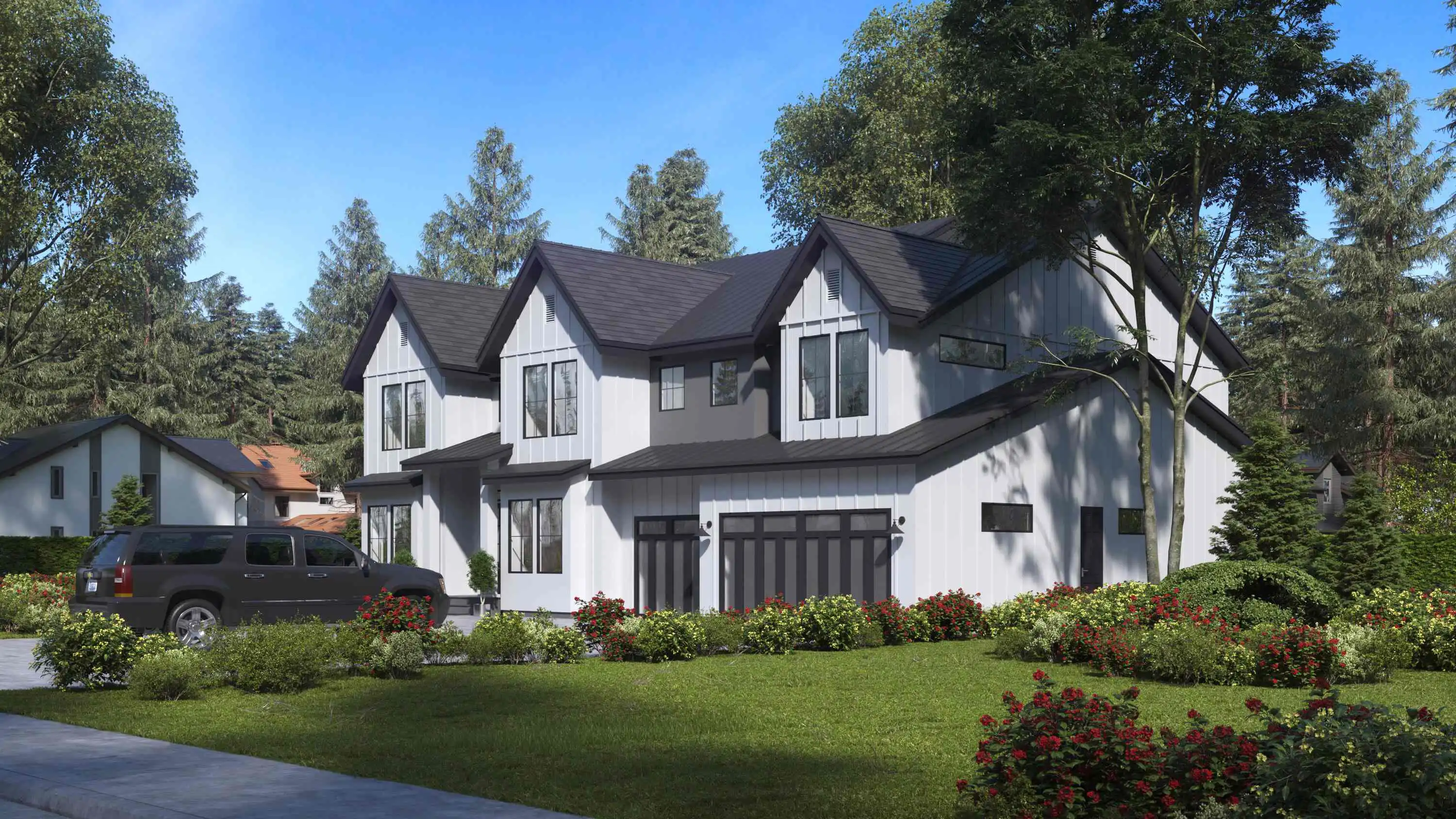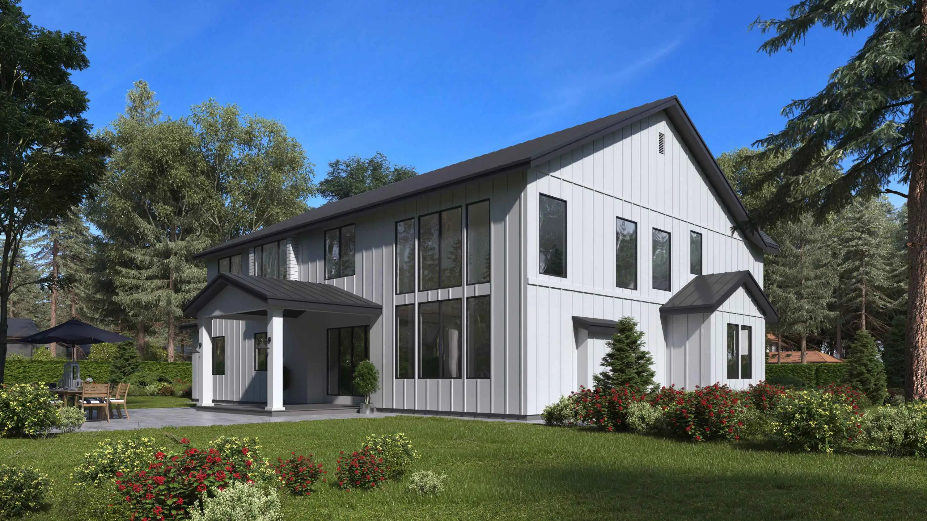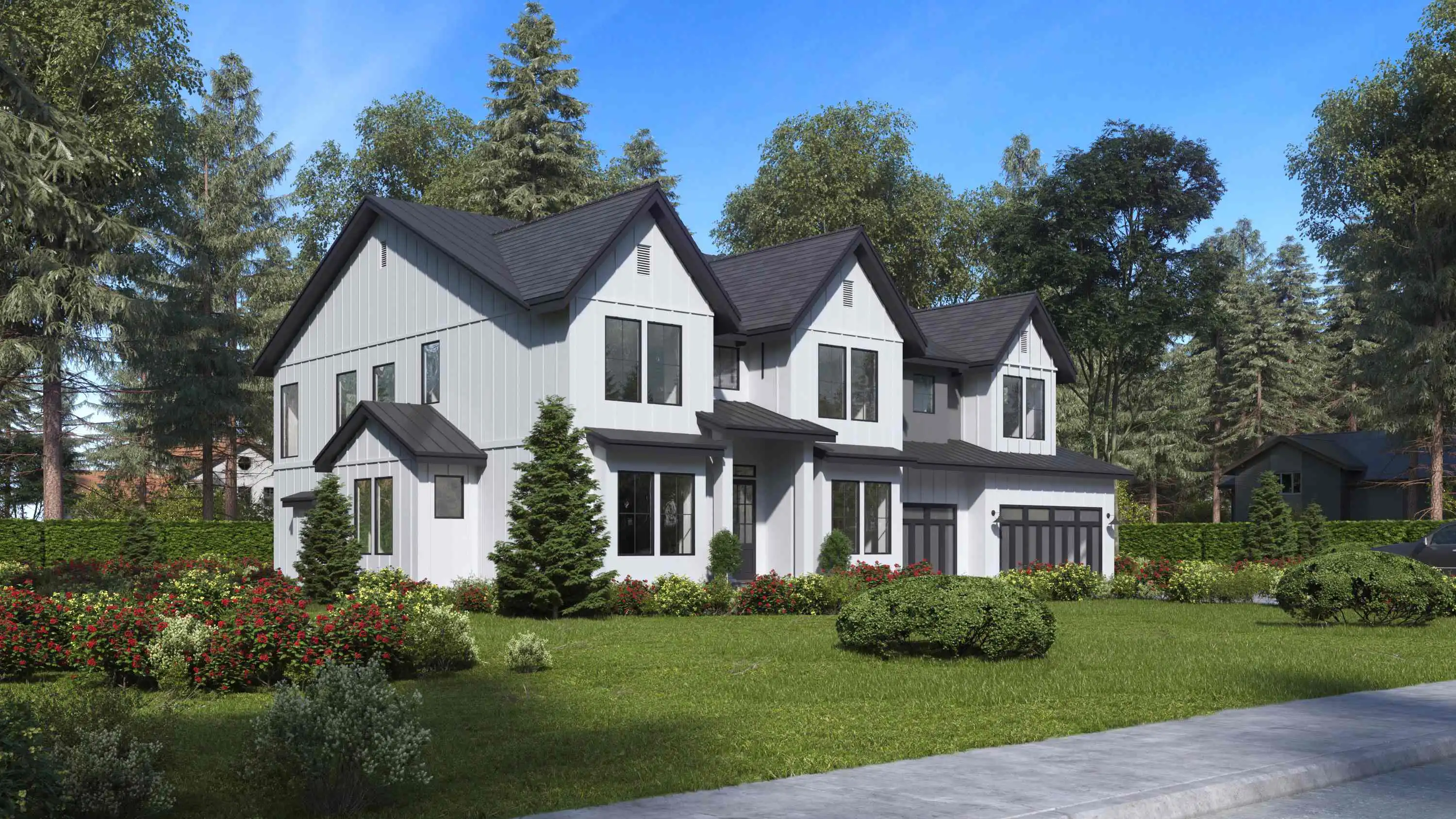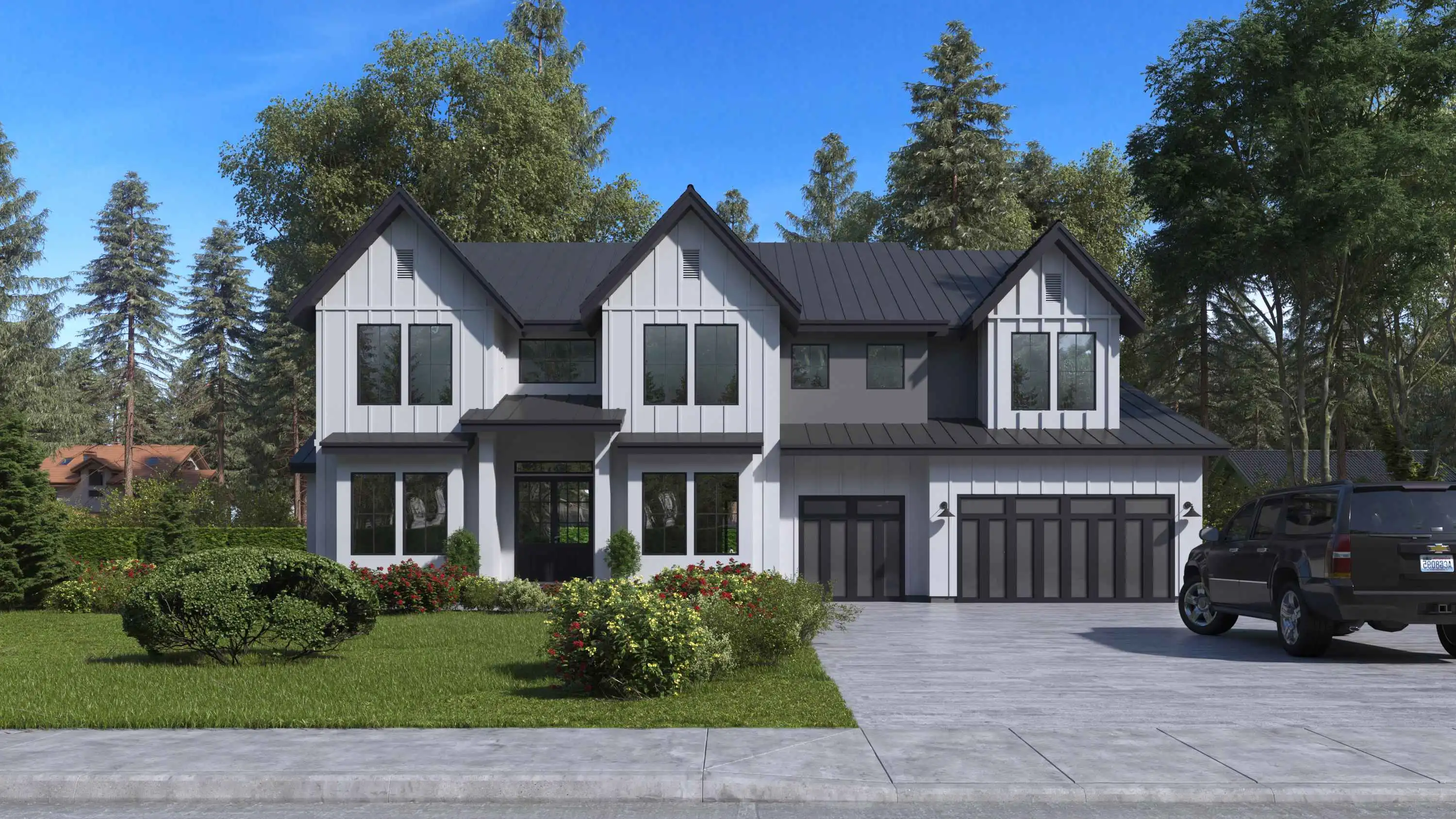 A wonderful family plan that can fit in practically any neighborhood, this 5 bed 5.5 bath contemporary style plan has tons of great space. While the exterior perfectly blends different design elements of contemporary and farmhouse homes, the inside is equally as impressive. Beyond the 3-car garage, the front door opens to reveal a massive 4,941 square foot interior, beginning with the foyer which is flanked by the office and formal dining room. Ahead lies a stunning great room with vaulted ceilings that go up 2-stories! Also nearby is the gourmet kitchen and a convenient guest suite with a private attached bath. Upstairs has 4 more bedrooms, each with their own attached bath, including the master suite which features a spa-style retreat. This level also has a bonus room which is a great and flexible space for you and the kids.