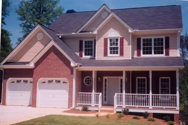 A three-quarter-length porch creates an inviting entry. Offsetting gables at the garage break up the typical front entry look. Side entry garage is possible if lot size allows. The open foyer and angled staircase give drama to the entry. The openness of the rear rooms provides a feeling of spaciousness. Secondary bedrooms share a vanity area opening to a private commode and tub room. The master bath features garden tub, his and hers vanities and commode closet, features typically associated with larger homes.