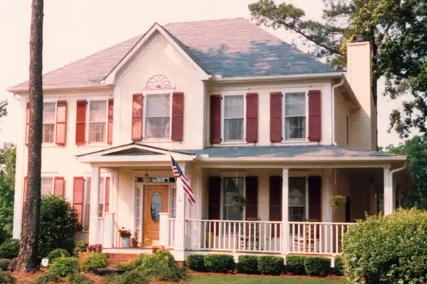 This home is reminiscent of Main Street USA with its classic features, but with the added warmth of a front porch that wraps graciously around the corner and down the side of the house. Entering the foyer you can see all the way through the house. The two-story foyer is flanked by the formal living room and dining room. The stairs are tucked back in the center of the house while still visible.