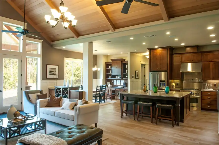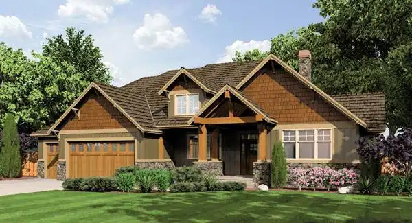 Simplicity and time-tested design enforce this craftsman-style home with durability and unadorned elegance. This open plan enjoys main-level living with a bonus, upstairs storage space. The breathtaking, nearly 3,000 square foot main level features a vaulted great room, formal dining room, master suite, eating nook, two additional bedrooms and a three car garage. Unique built-ins give the home character, which include a seat in the foyer, a bench in the utility room, a desk in the eating nook, and displays in the dining room. With its impeccable details, this free flowing craftsman defines effortless style.