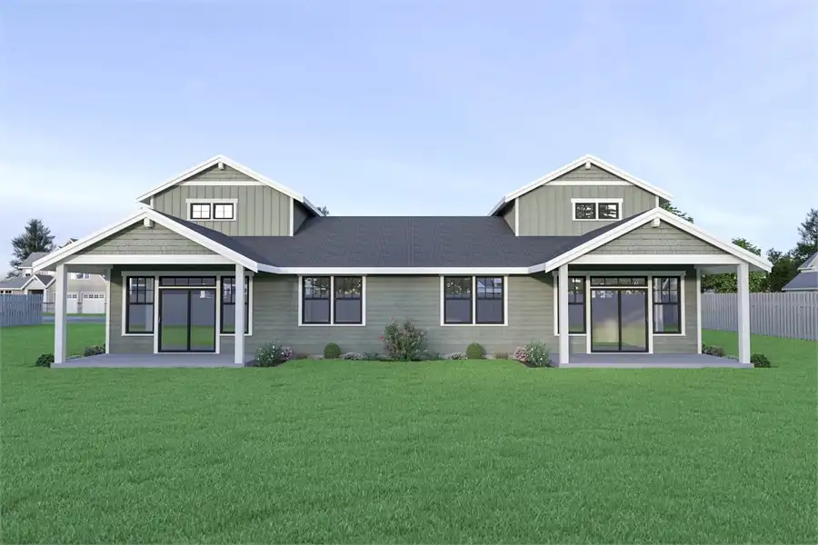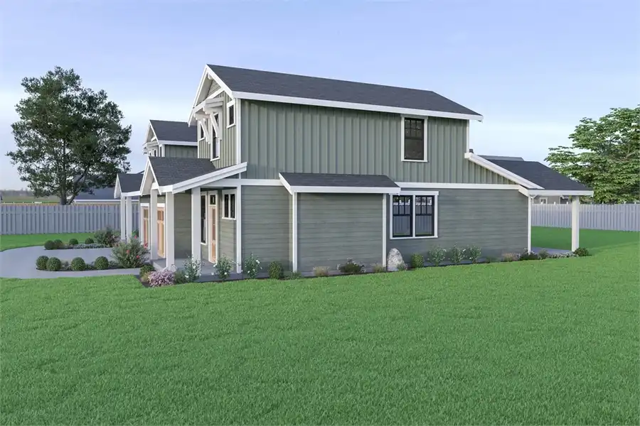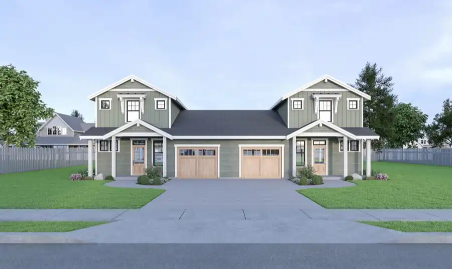 Combine the affordability of a duplex with the stylish comfort of a practically single-family home and you get this Craftsman beauty. Two identical units offer 1,440 square feet each, sharing only a garage wall and a master bedroom wall. This means that the entire plan feels totally separate and private, a great feature! Notice how each side has an open concept design, highlighted by features such as an open living room and galley kitchen, along with covered front and back porches. You'll also want to take a look at the upstairs bedrooms, offering both the kids and guests an added bit of privacy and comfort.