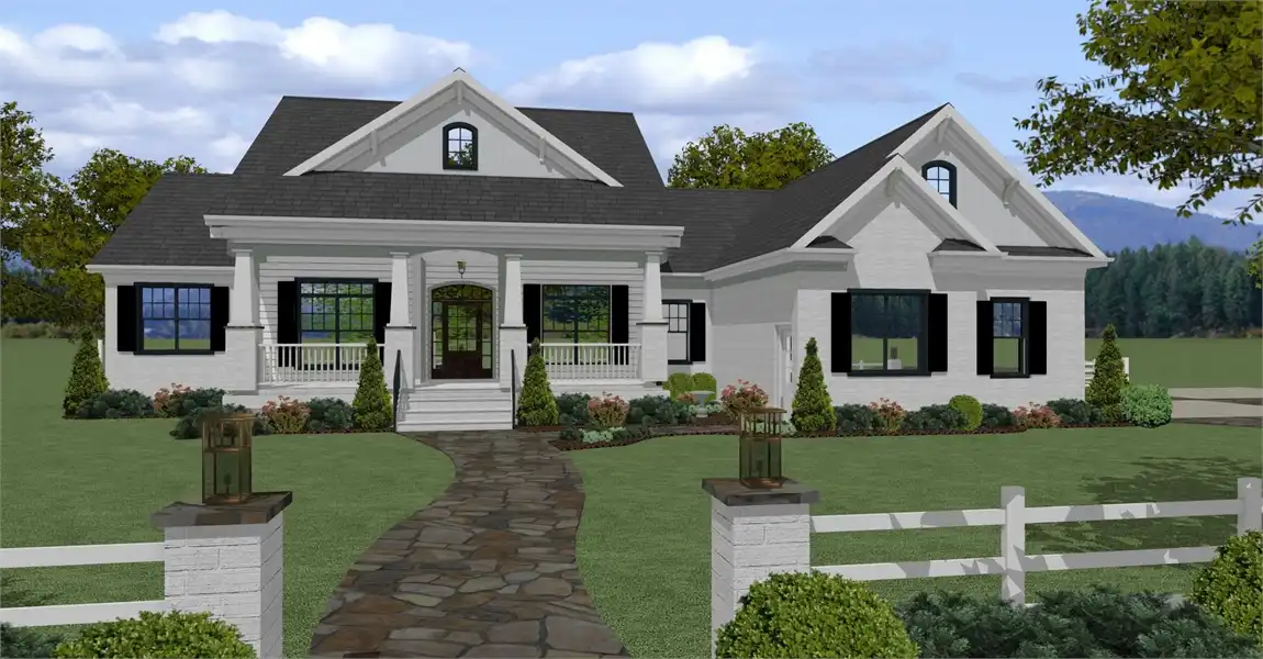 A three car garage, screened porch, spacious country kitchen, an optional 1,535 sq. ft. bonus area and an optional 2,352 sq. ft. basement make this home irresistible!  This is a sophisticated country farmhouse:  it has an updated white wash facade and a spacious interior design.