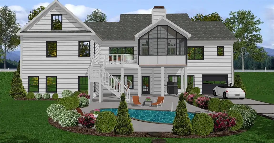 Relax in the luxurious master suite which includes a tray ceiling, a sitting area, his and hers walk-in closets, and exquisite bath. The 14'-3" x 22'-6" country kitchen, with a walk-in pantry, is open to the vaulted family room. A French door leads to the vaulted screened porch. The deck is accessible from both the screened porch and master bedroom. A decorative square column and tray ceiling adorn the elegant dining room. Bedrooms two and three each feature walk-in closets and individual baths. Tucked behind the functional laundry room are stairs accessing the optional basement and future bonus area.