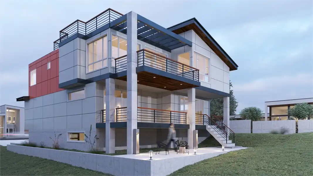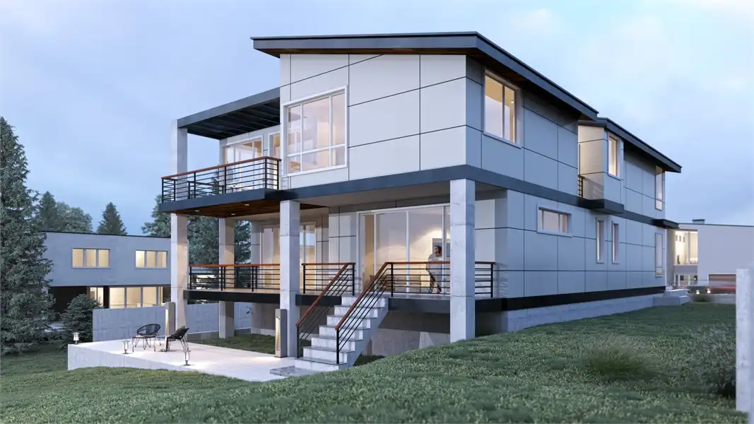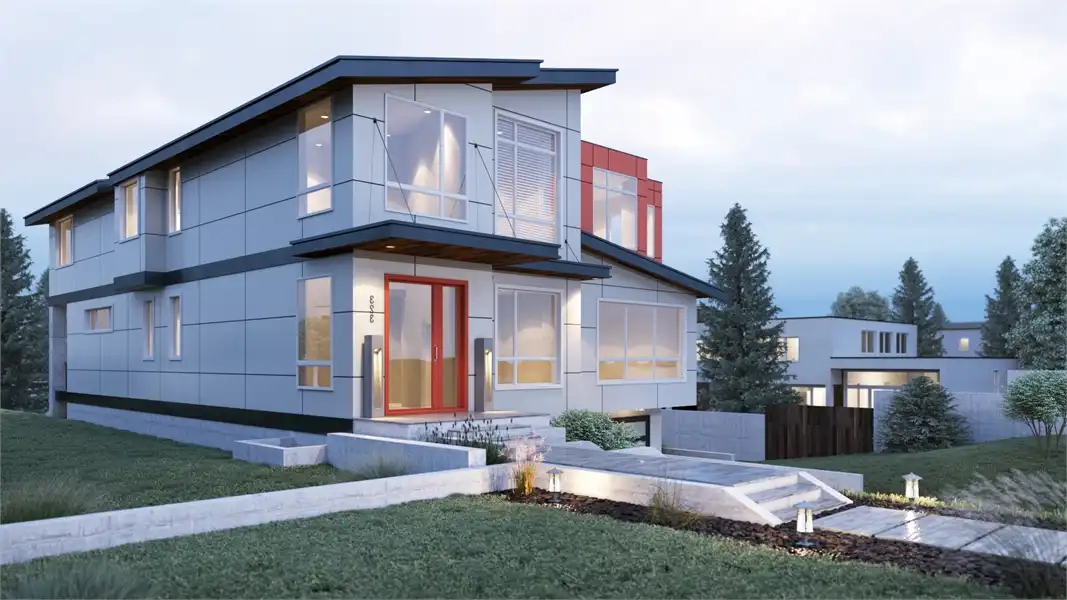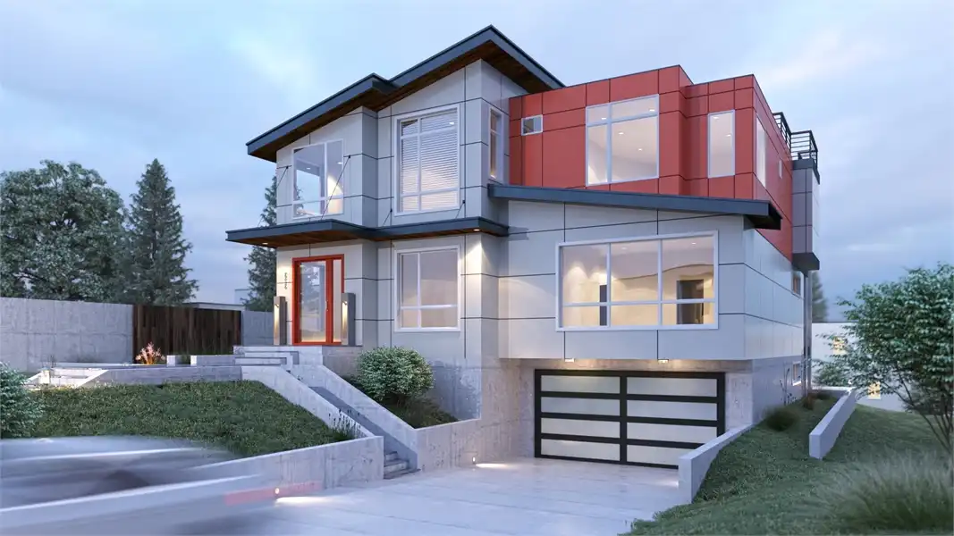 With designs that look as though they are straight out of an art museum, this contemporary plan is reminiscent of a modern masterpiece. 3 floors, 4 beds and 4.5 baths means that there is plenty of space for everyone to enjoy in this home that is perfectly suited for a narrow or sloping lot. And for another unique twist, move inside to discover that this plan has an inverted layout floor plan, meaning that the bedrooms are conveniently on the first floor, while the living spaces are on the top floor, with unbeatable views all around. The ground level features a drive-under 4-car garage, as well as your very own elevator, making this plan accessible to everyone. The main floor finds 3 auxiliary bedrooms, long with a large rec room for the kids, and a covered deck nearby. Upstairs is home to your gourmet kitchen and spacious great room, along with the stunning master suite and an equally impressive rear sundeck.