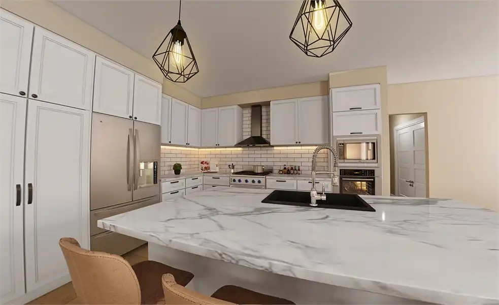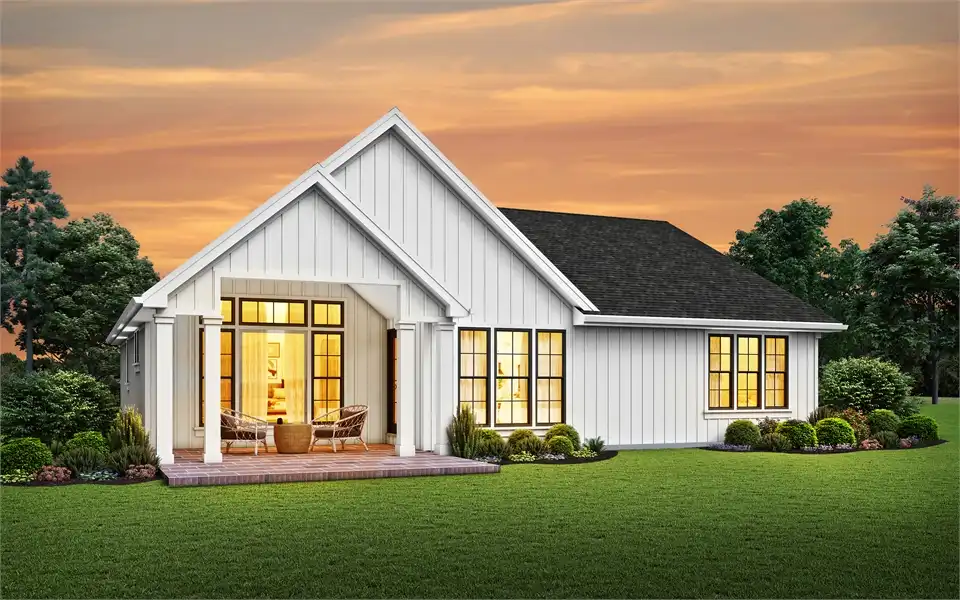 Travel back to a simpler time with this contemporary take on a classic family farmhouse. A comfortable 1,704 square feet is joined by 3 beds and 2 baths, resulting in a spacious yet affordable home, great for people of all ages. An ample amount of inviting curb appeal draws you in, either via the welcoming front porch or the 2-car garage which is nestled away on the side. The porch opens on to the foyer where you'll discover the 2 auxiliary bedrooms and a full bath. Beyond sits the open concept great room which joins with the island kitchen and dining room, before opening on to a great outdoor entertainment space. Finally, relax and rest in your master suite, a private area, highlighted by a dual-vanity en-suite and a large walk-in closet with added storage options! The laundry room is conveniently nearby, making for quick work with weekend chores.