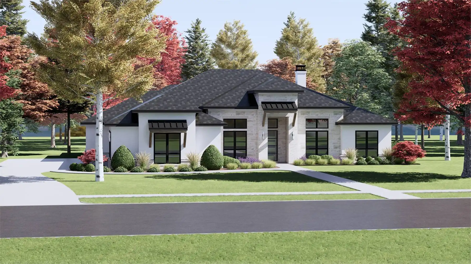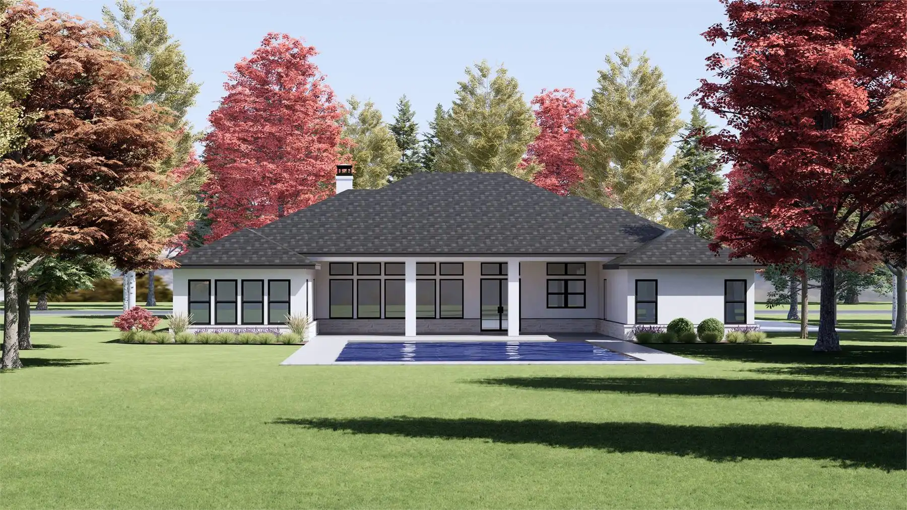 House Plan 8452 delivers a refined European-inspired design that balances everyday livability with timeless appeal. Spanning 3,621 square feet, this home offers a generous, well-organized layout ideal for both relaxed family life and hosting guests. A welcoming front porch sets the tone, leading into an airy open living space designed for connection and comfort. The plan includes four bedrooms, three and a half bathrooms, and a flexible bonus area that adapts easily to changing needs—whether for work, hobbies, or guests. A chef-ready kitchen, a warm fireplace anchoring the main living area, and a private primary suite add a layer of luxury, while expansive windows bring in abundant daylight and frame views of the surrounding setting.