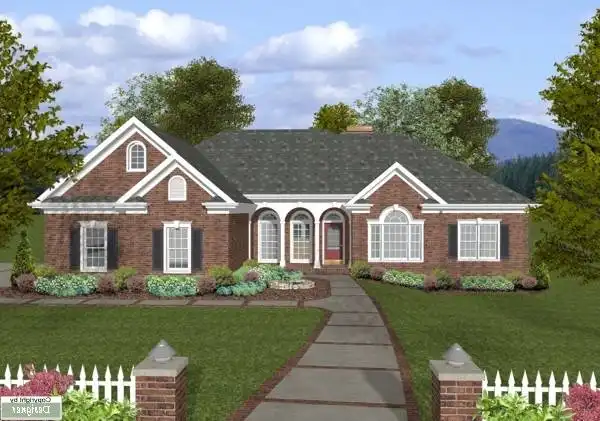 We've integrated our customer's most requested features into a mid-sized ranch in the creation of this attractive new design. The elegant brick exterior is accented with a "Palladian" window, multi-level trim and an inviting front porch. A flexible office/living/4th bedroom, an exquisite master suite, a 3-car garage, and a large screened porch are sure to make this 1998 square foot home irresistible.