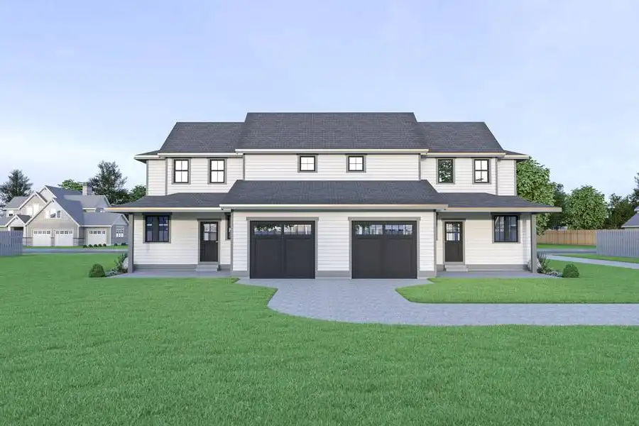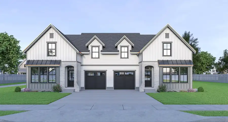 Spacious, affordable, and super stylish, this duplex farmhouse plan has it all! Each unit within this home features an impressive 1,535 square feet of its own private space, including 3 large bedrooms and 2.5 bathrooms. An open concept accents the first floor, joining your gourmet kitchen with the dining nook and cozy family room. You'll also notice the drive-through 2-car garage along with the covered back patio and grilling porch. Move upstairs to discover all of your sleeping quarters. This includes the master and its full en-suite as well as a walk-in closet. In fact, each bedroom has its own large closet, perfect for all sorts of storage possibilities!