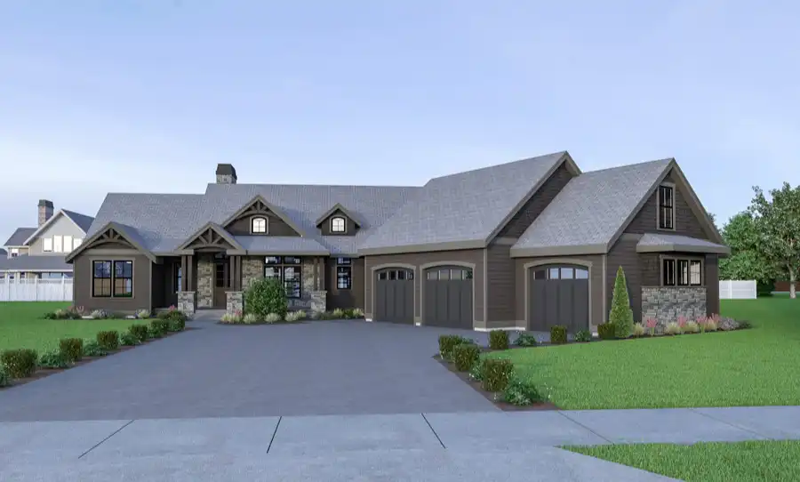 An impressive layout coupled with an attractive curb appeal means that this Craftsman ranch is ready to amaze. 3,285 square feet of living space offers tons of rooms to enjoy, including an open concept main area which joins the vaulted family room with the gourmet island kitchen. Check out the addition of a private den which can double as an office, along with a hearth room, a unique and cozy space. Other highlights of this home include its covered back deck, master suite with a full bath and walk-in closet, and a 3-car angled garage. In fact, the garage even has a bonus room above it, perfect for added storage and functionality to this already impressive plan.