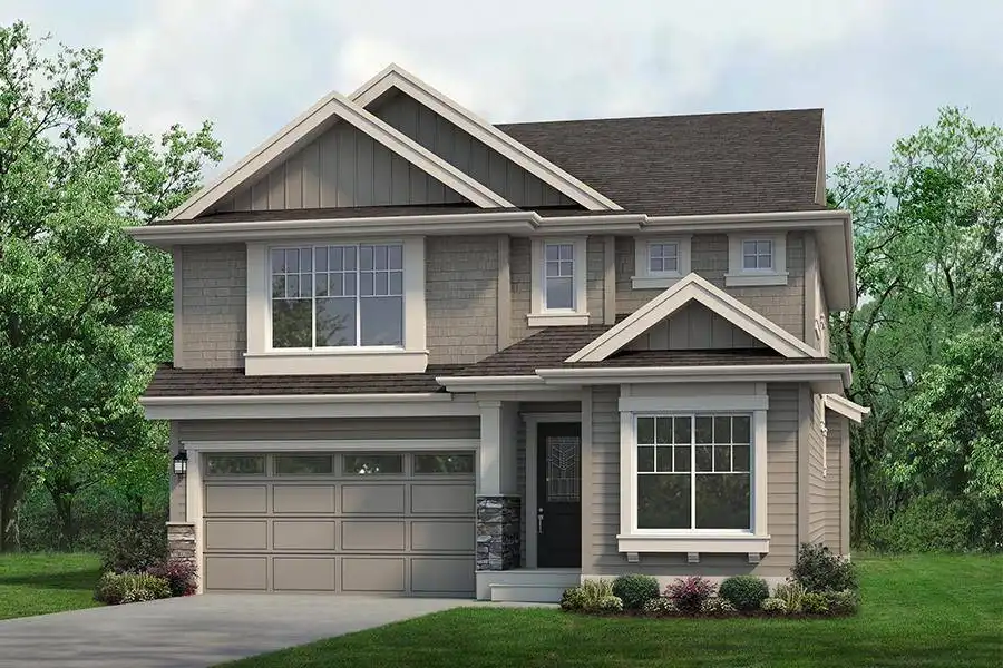 This two-level Craftsman style house plan is a perfectly designed home for a large family and a narrow lot. This home offers you 2,332 square footage and features five spacious bedrooms and three full baths! This home is ideal for a growing family and for welcoming guests. The comfortable home has a beautiful master suite with a fabulous bathroom. This home has two patios, one in the front and another in the back. When it’s time to get tidy for the week, turn on some music and get full use of the laundry room located near the master bedroom. The ample kitchen offers an island and pantry perfect for those who need extra space. Near the kitchen, you’ll find the dining room, great for sharing food and memories. Conveniently connected to the front of this home, you’ll find a two-car garage. This contemporary space is a complete package giving you simplicity and comfort.