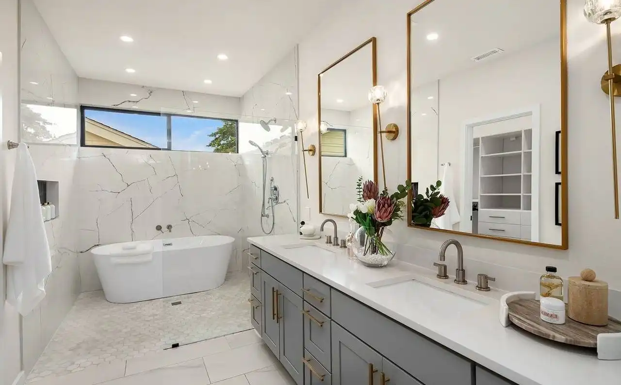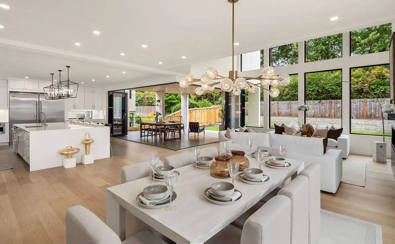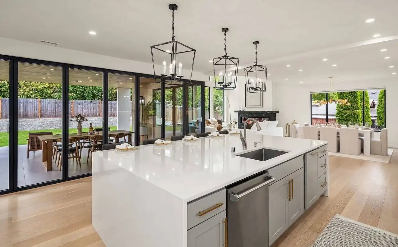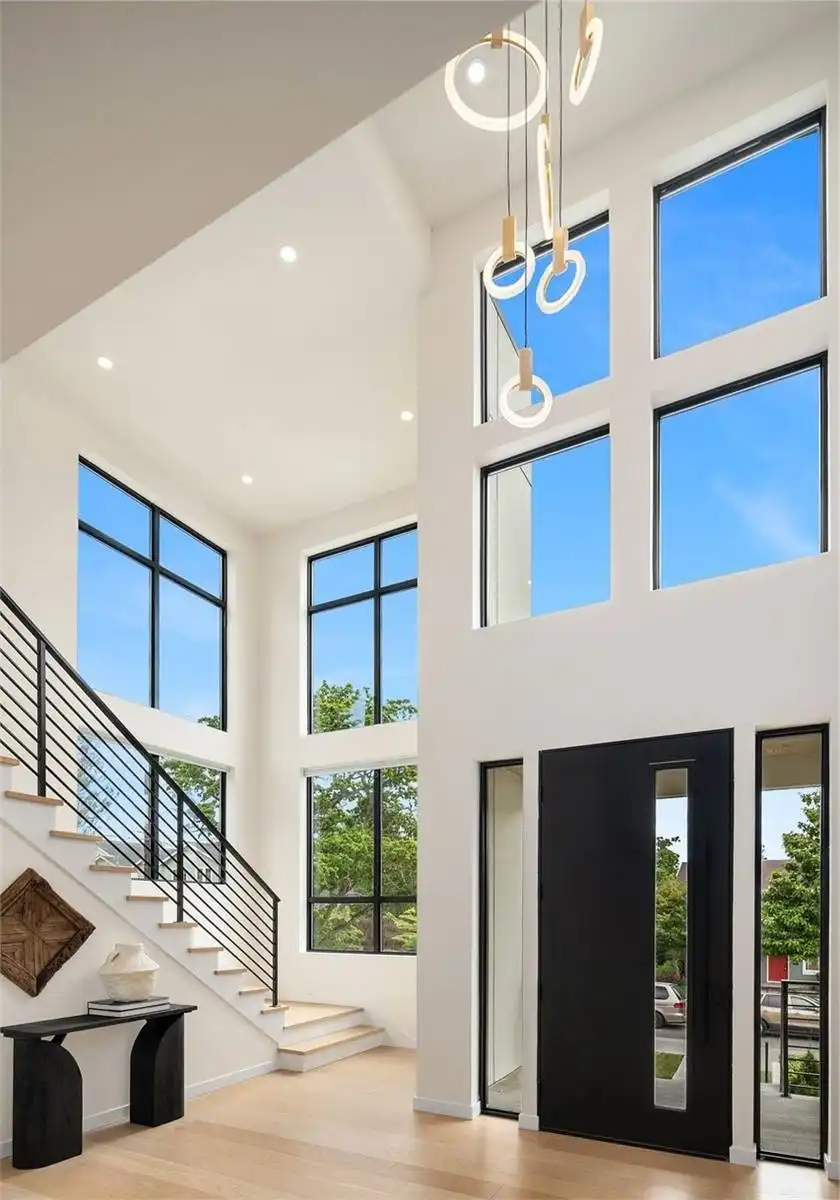 House Plan 8592 is a 4-bedroom, 2.5-bathroom contemporary modern home with an open floor plan and 999 s.f. lower level apartment. This luxurious home features a formal living and dining room, a family room with a fireplace and french doors that open to the rear porch, and a gourmet kitchen with a center island, breakfast bar, and walk-in pantry. The first-floor office looks out into the front yard and is perfect for working from home. Upstairs you'll find the luxurious master suite features a sitting area, his and hers walk-in closets, and a lavish master bathroom with a tub, separate shower, and dual vanity sinks. Additional features of this home include a vaulted entry and great room, a 2-car garage, and plenty of storage. With over 3,000 square feet of living space and in-law or rental apartment, this home is perfect for a large family.