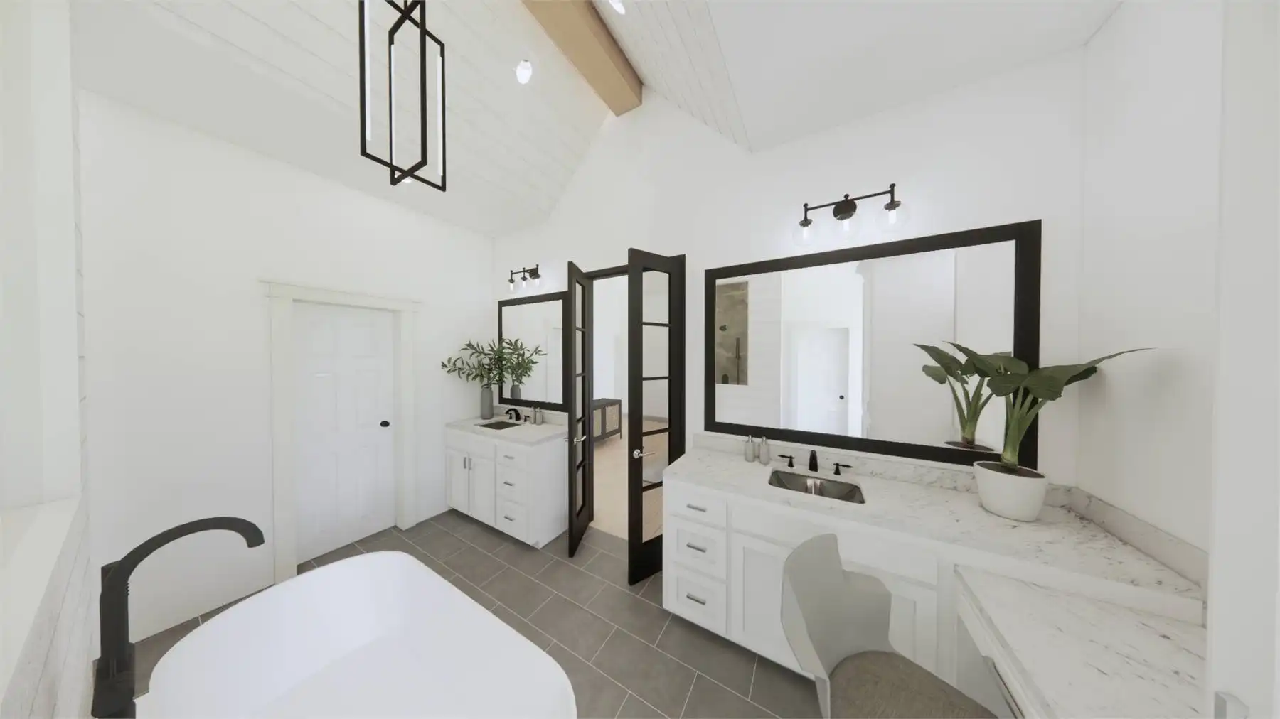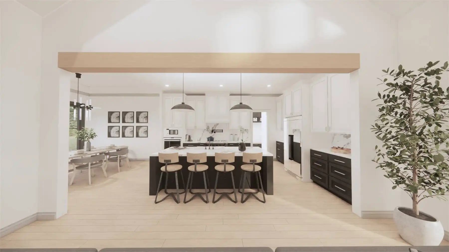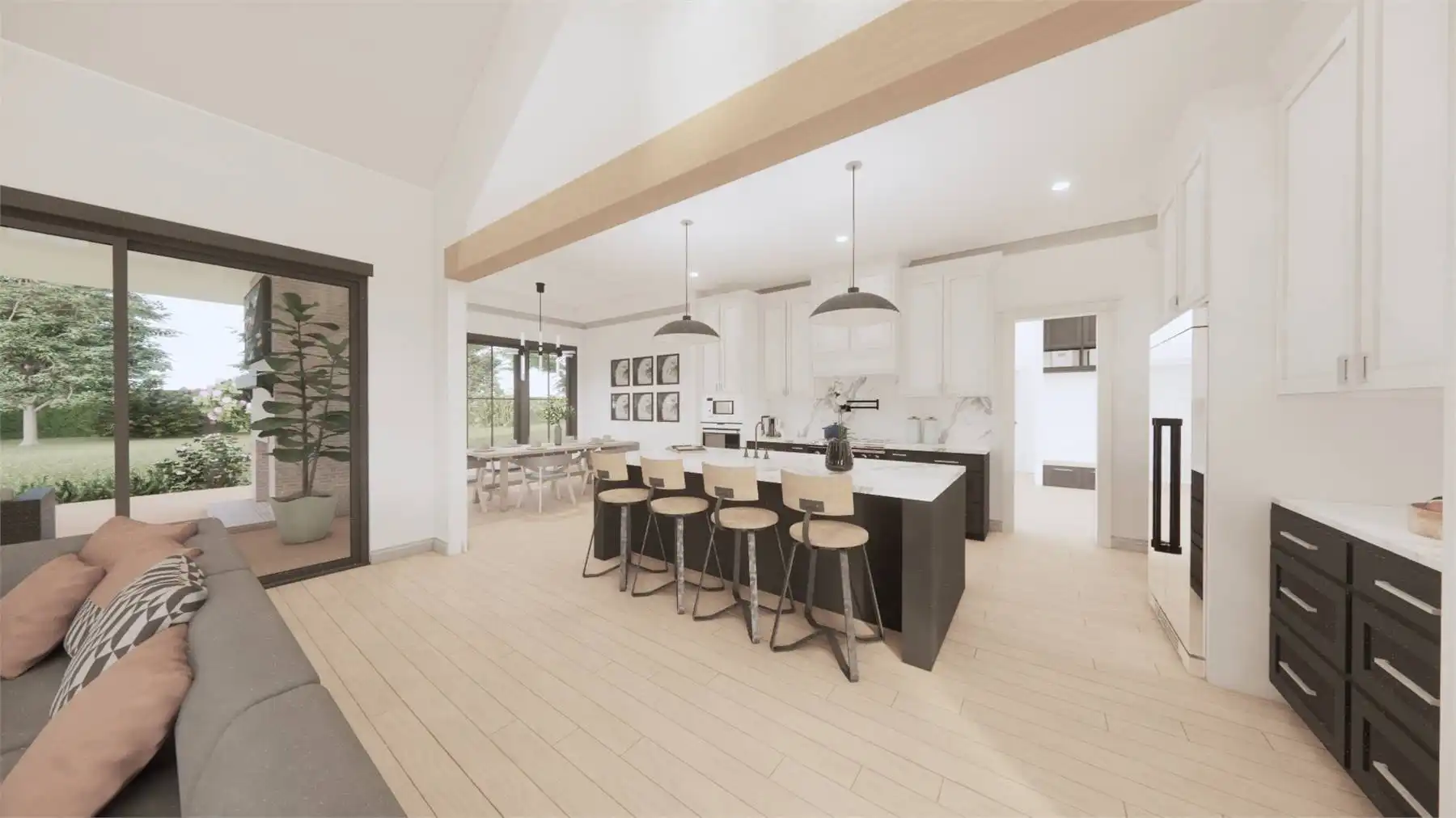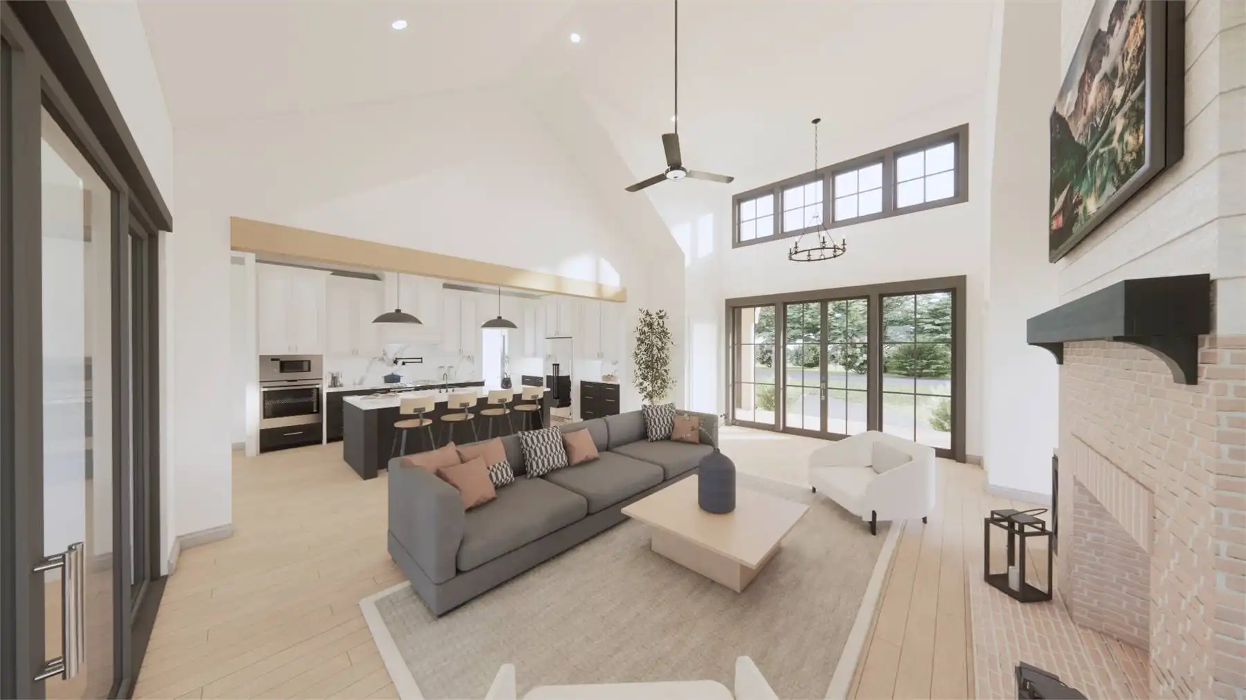 Need an amazing farmhouse for a family? Give House Plan 8593 your consideration! This 2,578-square-foot country-style ranch offers open living, four split bedrooms, and outstanding outdoor potential with an outdoor kitchen and fireplace. The vaulted great room makes up the heart of the home; it's open to the island kitchen, which sits beside the dining area, and connects to the back porch through patio doors that slide from the center to really open up the feel. The vaulted master suite and its luxurious five-piece ensuite sit behind the kitchen, along with the laundry room and mudroom entrance coming in from the garage. Two secondary bedrooms share a hall bath behind the great room's fireplace, while the last bedroom is directly off the foyer and would make a great office, if you prefer. Finally, there's a bonus with a full bath over the garage that can provide whatever else you may need. House Plan 8593 would make a great choice for a neighborhood or to build out on acreage!