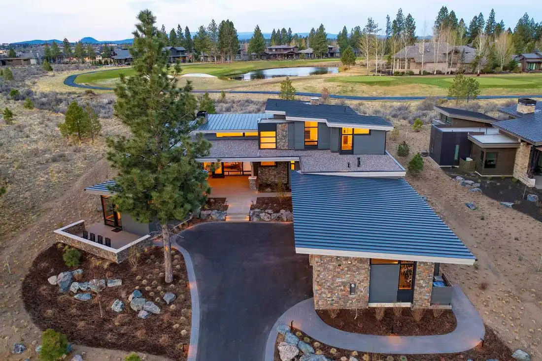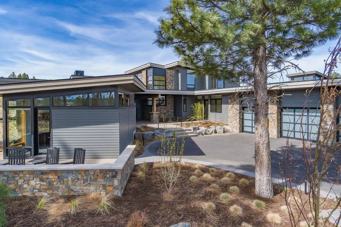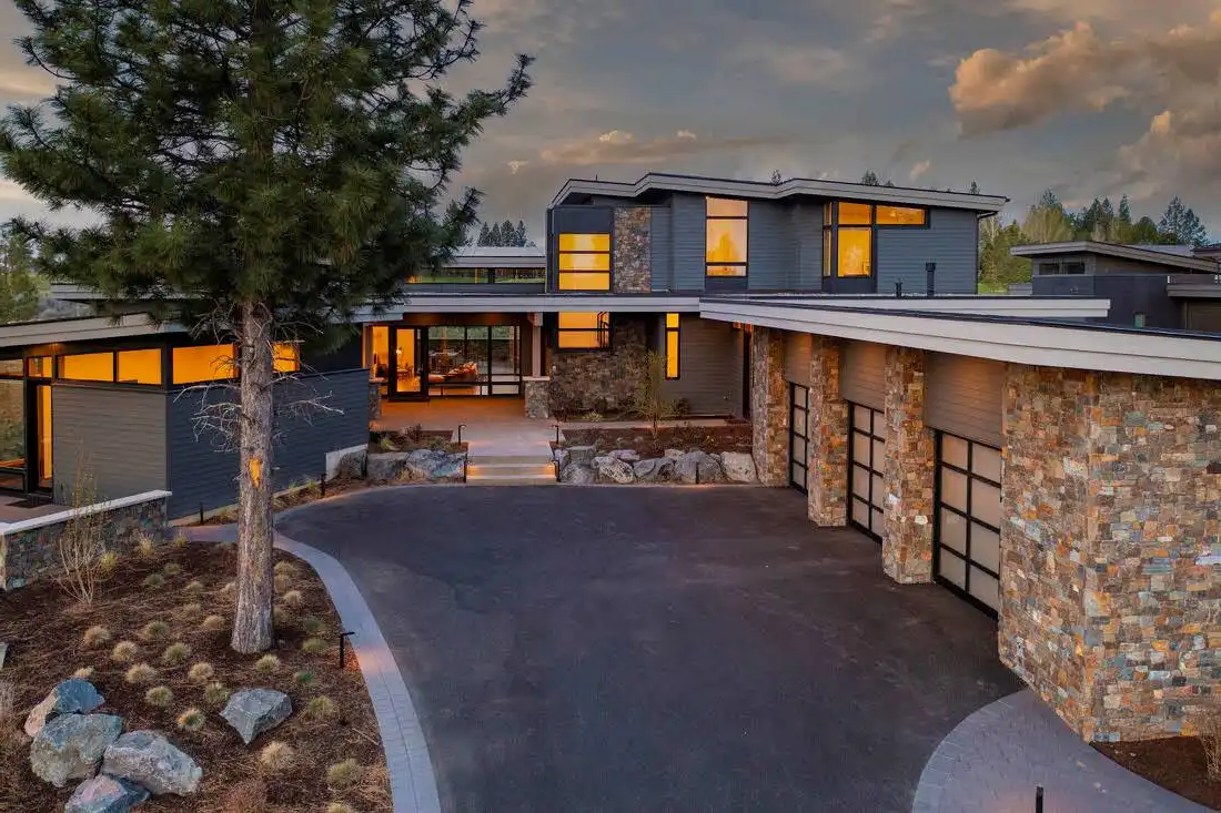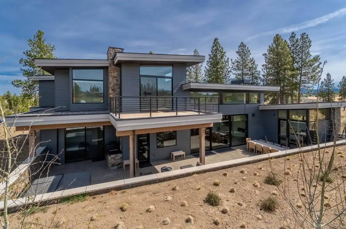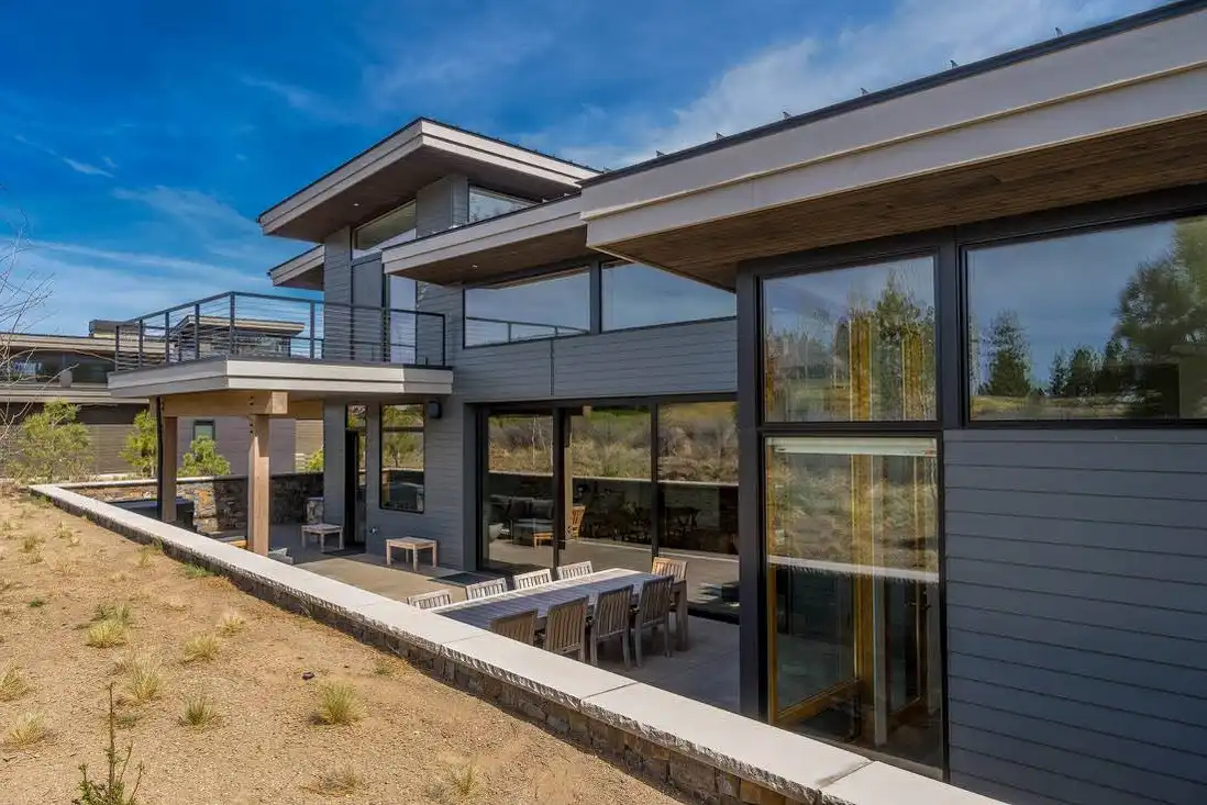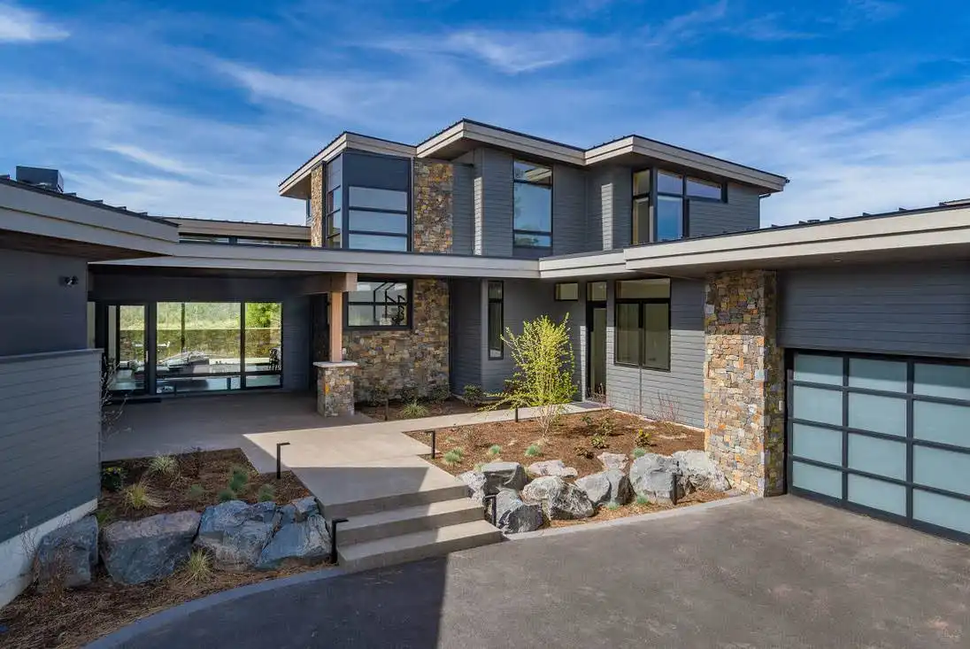 This stunning luxury contemporary home features exceptional outdoor living areas that are easily accessed from the glass enclosed great room. With a three-car garage and 4,756 square feet of living space, you can plan décor ideas, host events, and grow a family. Your family will enjoy getting settled in with the five bedrooms plus the five and a half bathrooms spaces out between the two floors. Get ultimate privacy and tranquility in the master bedroom, complete with a large master bathroom and walk-in closet, located on the main floor with access to the vast terrace. Enjoy your mornings or evenings on the upper floor. Watch the sky set or rise on the upstairs deck. Create a cooking ambiance in the open concept kitchen with beautiful outdoor views. Spend time with family in the dining room, great room, or outside by the fire pit. Other features to get excited about are the flex room, the den, storage area, mudroom, and laundry. It’s always great to have additional space for organization purposes and for when guests come to visit. Create memories in this home that will last a lifetime!
