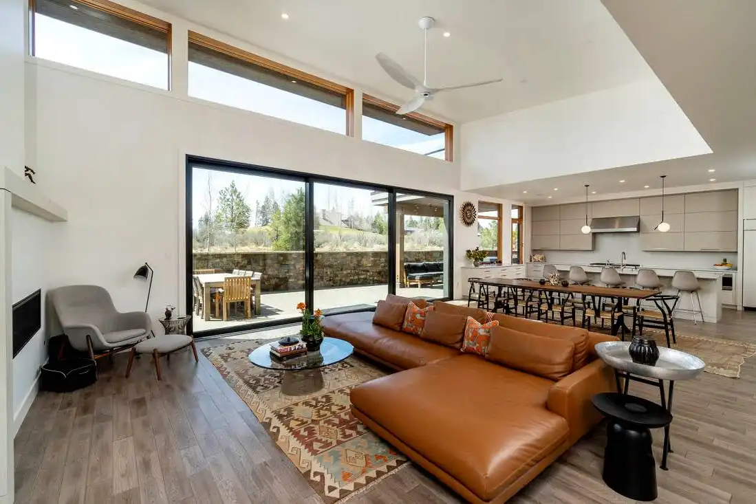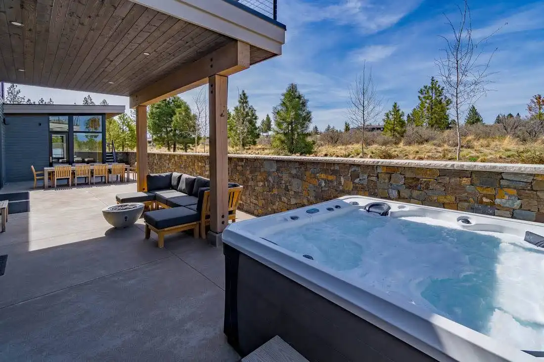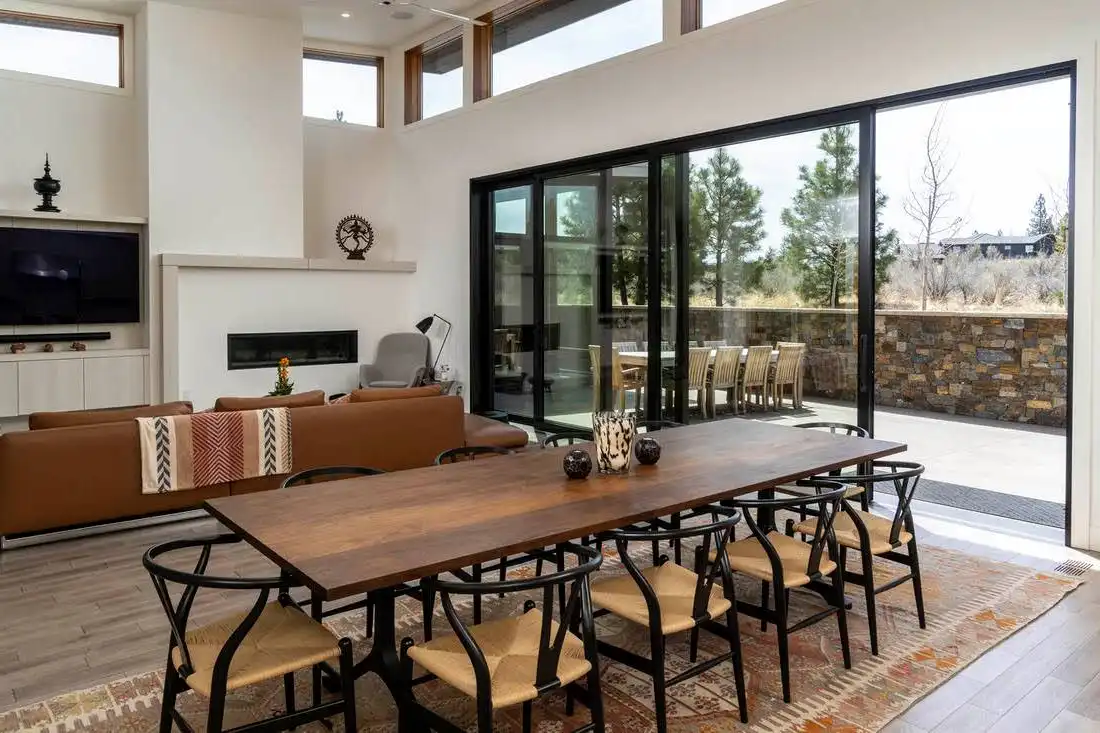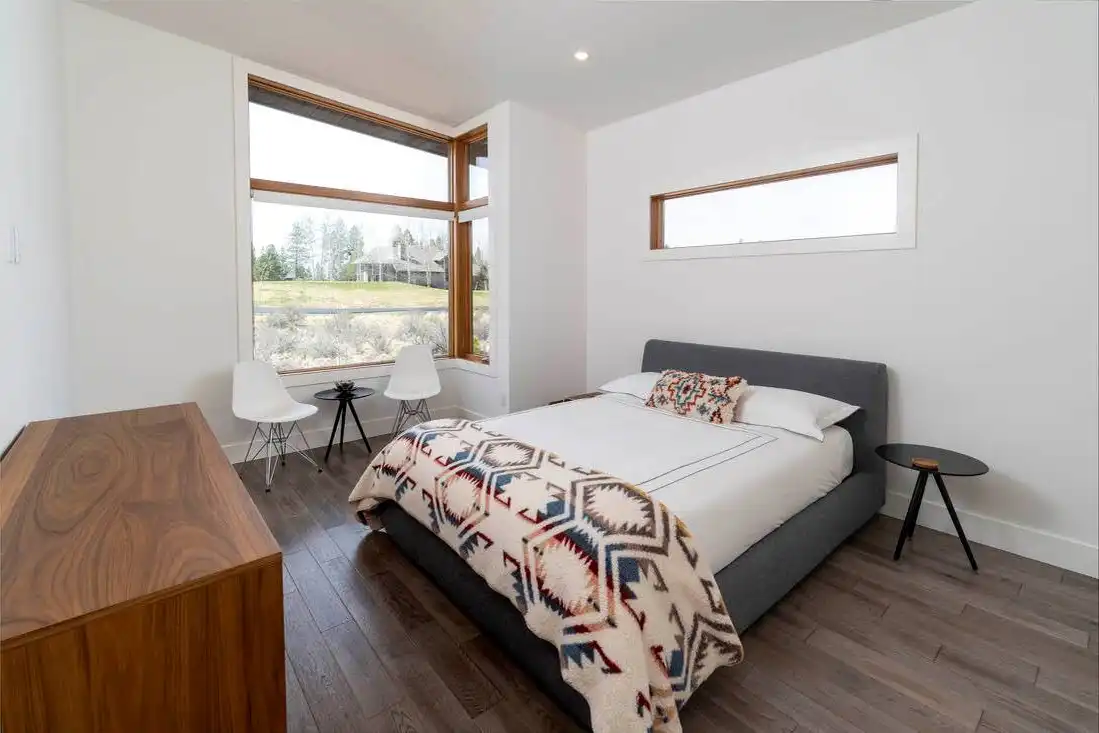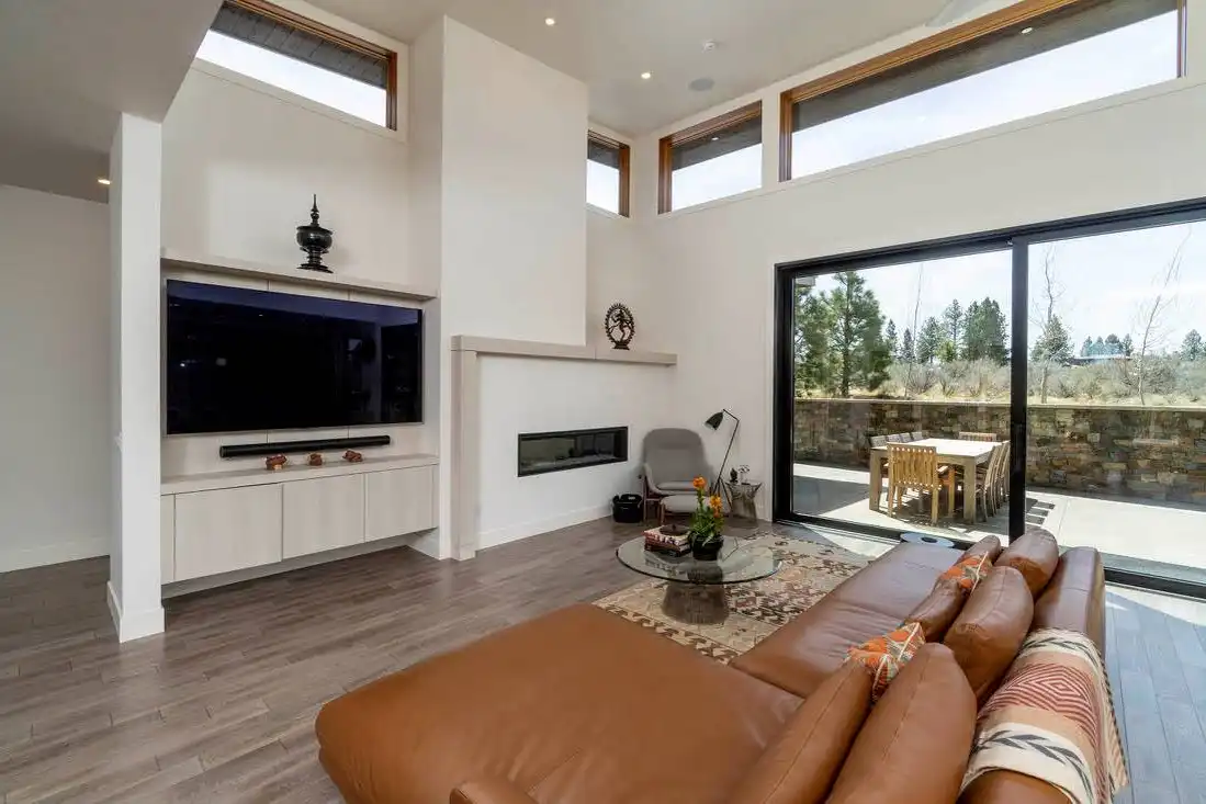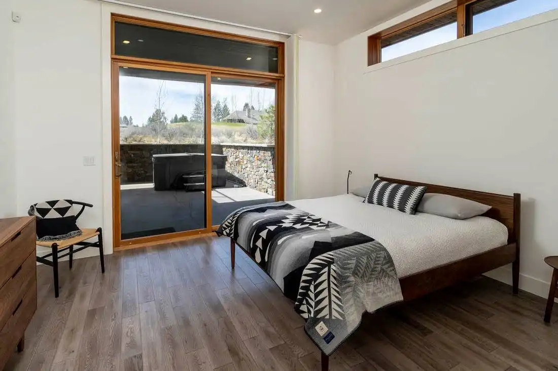 This stunning luxury contemporary home features exceptional outdoor living areas that are easily accessed from the glass enclosed great room. With a three-car garage and 4,756 square feet of living space, you can plan décor ideas, host events, and grow a family. Your family will enjoy getting settled in with the five bedrooms plus the five and a half bathrooms spaces out between the two floors. Get ultimate privacy and tranquility in the master bedroom, complete with a large master bathroom and walk-in closet, located on the main floor with access to the vast terrace. Enjoy your mornings or evenings on the upper floor. Watch the sky set or rise on the upstairs deck. Create a cooking ambiance in the open concept kitchen with beautiful outdoor views. Spend time with family in the dining room, great room, or outside by the fire pit. Other features to get excited about are the flex room, the den, storage area, mudroom, and laundry. It’s always great to have additional space for organization purposes and for when guests come to visit. Create memories in this home that will last a lifetime!