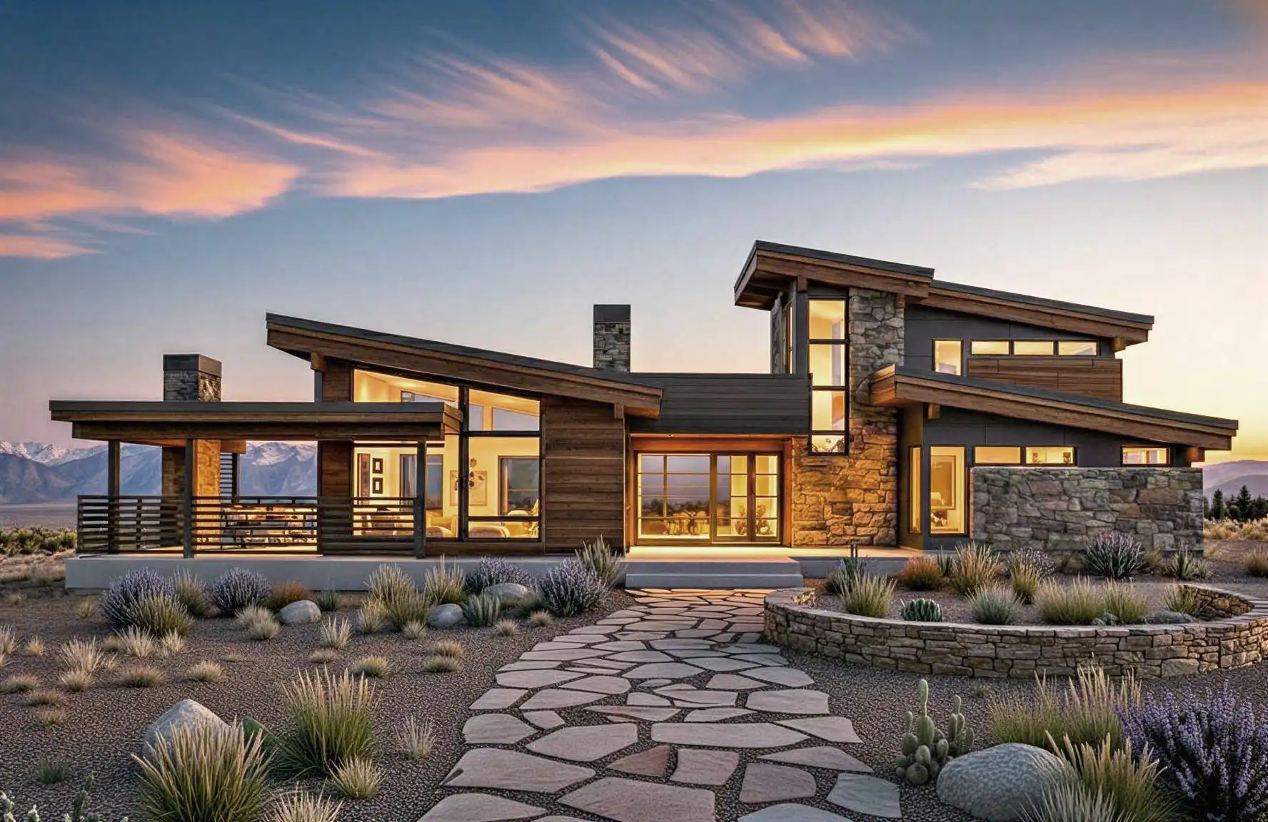 What a wonderfully modern and restful floor plan this is. Drive up into the three-car garage and enter the home only to find beautiful wooden beams in the great room and a spacious kitchen with floor-to-ceiling sliding doors overlooking the outdoors. You can do a lot in a home with a square footage of 4,006 with four beds and four and a half baths. You’ll have a beautiful rooftop deck for watching the sunrises and sunsets, in addition to a courtyard with a fireplace. This great layout has total privacy as the master suite has a private bathroom and walk-in closet. A laundry room, mudroom, and storage room are also great features attached to the home plan. Get ready to make space for guests who want to stay in the guest room on the upper floor. This home will create memories year after year.