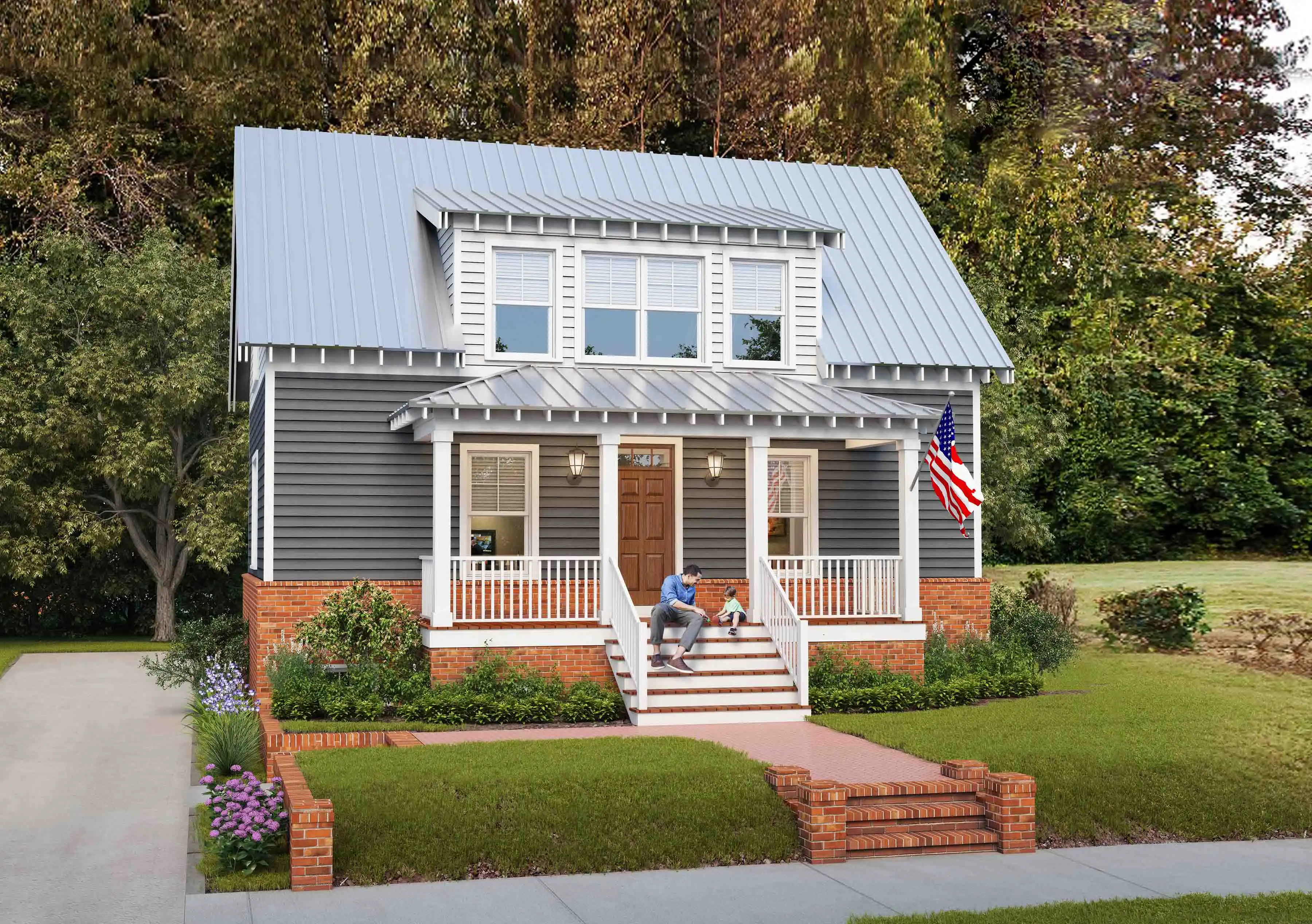 A great plan for just about any lot and any use, this cottage is actually quite spacious and totally affordable! 1,548 square feet of space provides 3 bedrooms, 2 bathrooms, and even room for future expansions. Check out the open family room and island kitchen, along with the full master and nearby covered porch. Upstairs you'll find 2 more bedrooms and a large full bath. Finally, the basement is a blank slate, ready for your finishing touches to make this home one-of-a-kind. Consider this plan as either a vacation home or even as a year-round dwelling, it is totally flexible!