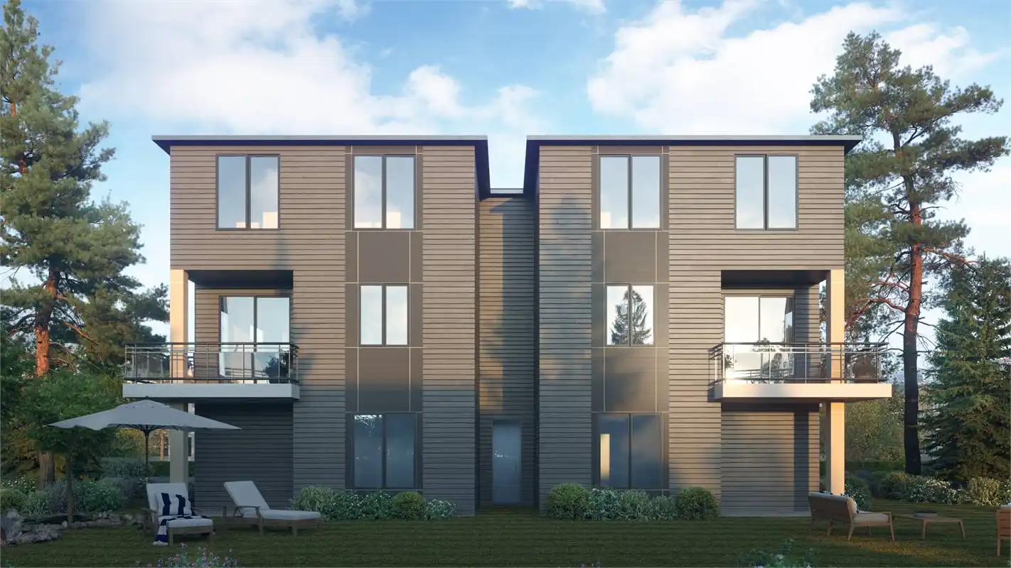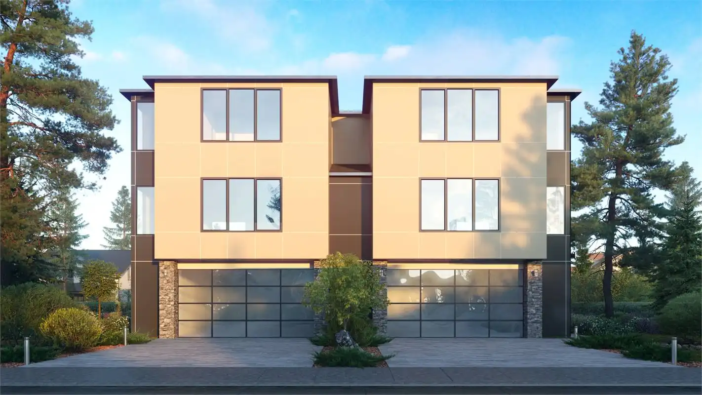 You have just found your new home.  Build this duplex, live on one side and rent out the other.  This magnificent, contemporary duplex is perfect for your large family.  Each side of the duplex enjoys 4 bedrooms and 3 1/2 bathrooms with a 2 car garage.  Each side is 2,187 square feet and is large enough for your extended family.  The space starts with the 4th bedroom on the ground floor, shared with the garage.  This bedroom has a full bath with walk in closet and is accessible either through the garage or through the front entry.  Upstairs you will access the living area of the home.  The Great room, dining room and kitchen are all inclusive on this level and creates a nice space for family togetherness.  The third level is where the additional three bedrooms are located.  A split plan upstairs allows for the master suite to be on the front side of the home, with the secondary bedrooms in the back.  The master suite has a large shower, dual vanities and roomy walk in closet.  The secondary bedrooms share a hall bath and the laundry is conveniently located in this area.  This plan is sure to please with room to spread out for all concerned.