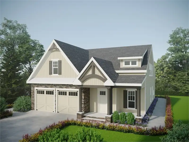 A fresh take on a wonderful family plan, this 2-story Craftsman has a touch of modern flair. An impressive 2,863 square feet of living space offers 4 bedrooms and 3.5 bathrooms, including a first-floor master suite and a fully private guest suite upstairs. Beyond the front entryway you'll discover an open concept joinder of the living room, dining room, gourmet kitchen and breakfast nook. You'll also find a lot of function out of places like the laundry and the master's dual walk-in closets. Upstairs is equally as impressive, providing bedrooms for the kids and an office space for you. And to tie it all together, this plan has an open-air loft which can function as just about any space that you may need. From a homework spot to a play space, the options are practically endless!