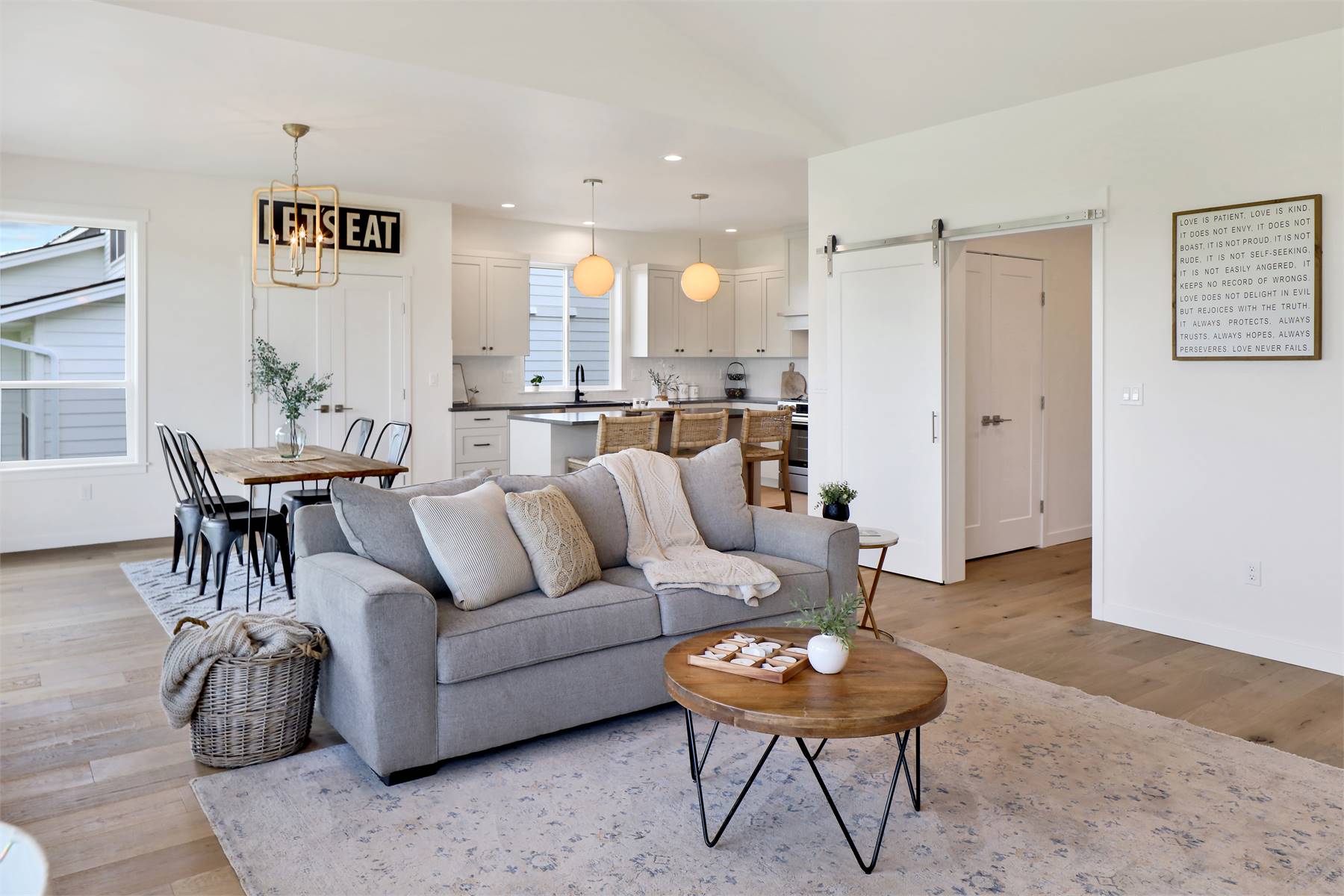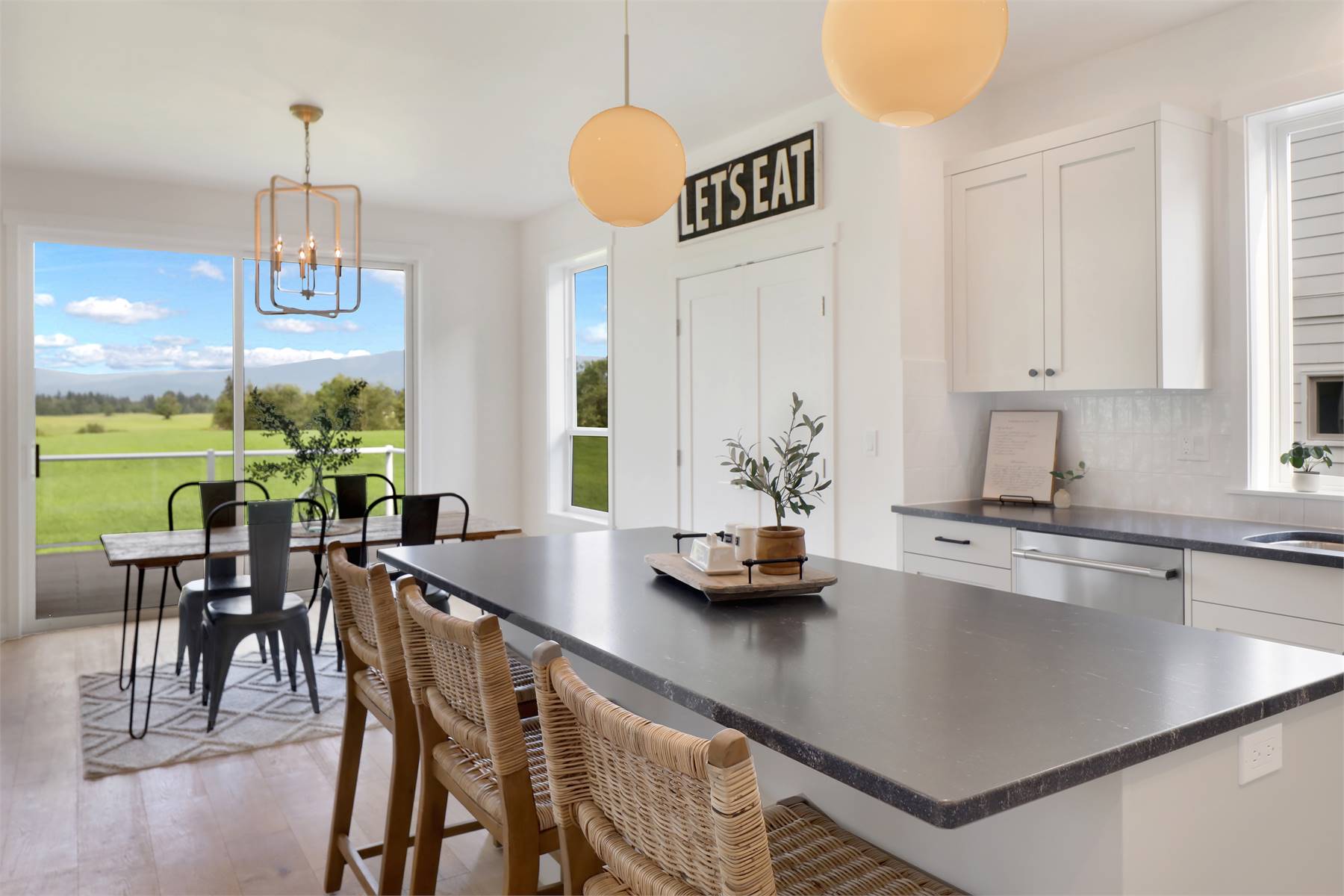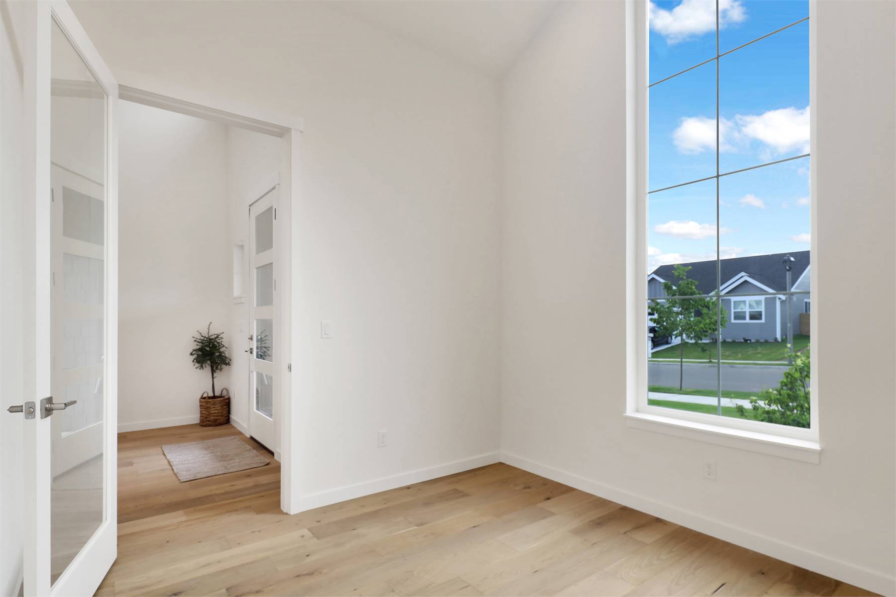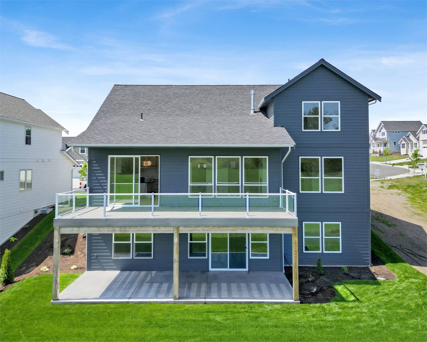 Enjoy this beautiful and contemporary farmhouse which is spacious and comfortable at 2,133 s.f. The first floor plan shows a great room, dining and kitchen open plan with vaulted ceilings which allows for free-flowing entertainment space. The large windows and sliding glass doors leading out to the rear deck will allow for alfresco dining. The master bedroom suite has dual sinks and separate water closet along with a very large walk-in closet. A first floor laundry and private office rounds out the main floor. The second level is where you'll find the large secondary bedrooms and bathroom.. The lower level is a walk-out basement which boasts a huge activity room that could be a media or entertainment space. The small kitchen area will help to make snacks readily available. The sliding glass doors allows access to the covered patio at the back of the home making access to the back yard easy. There is an optional/future space where you could add a bedroom and bathroom, making this perfect for the in-laws. This home is perfect for your growing family.