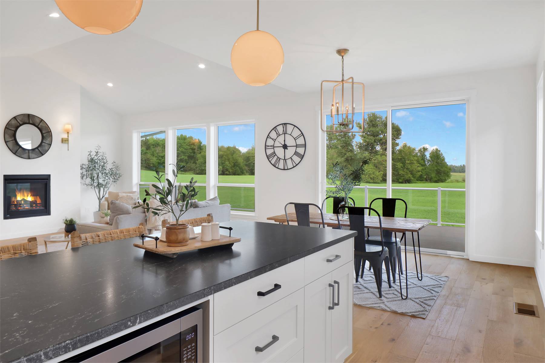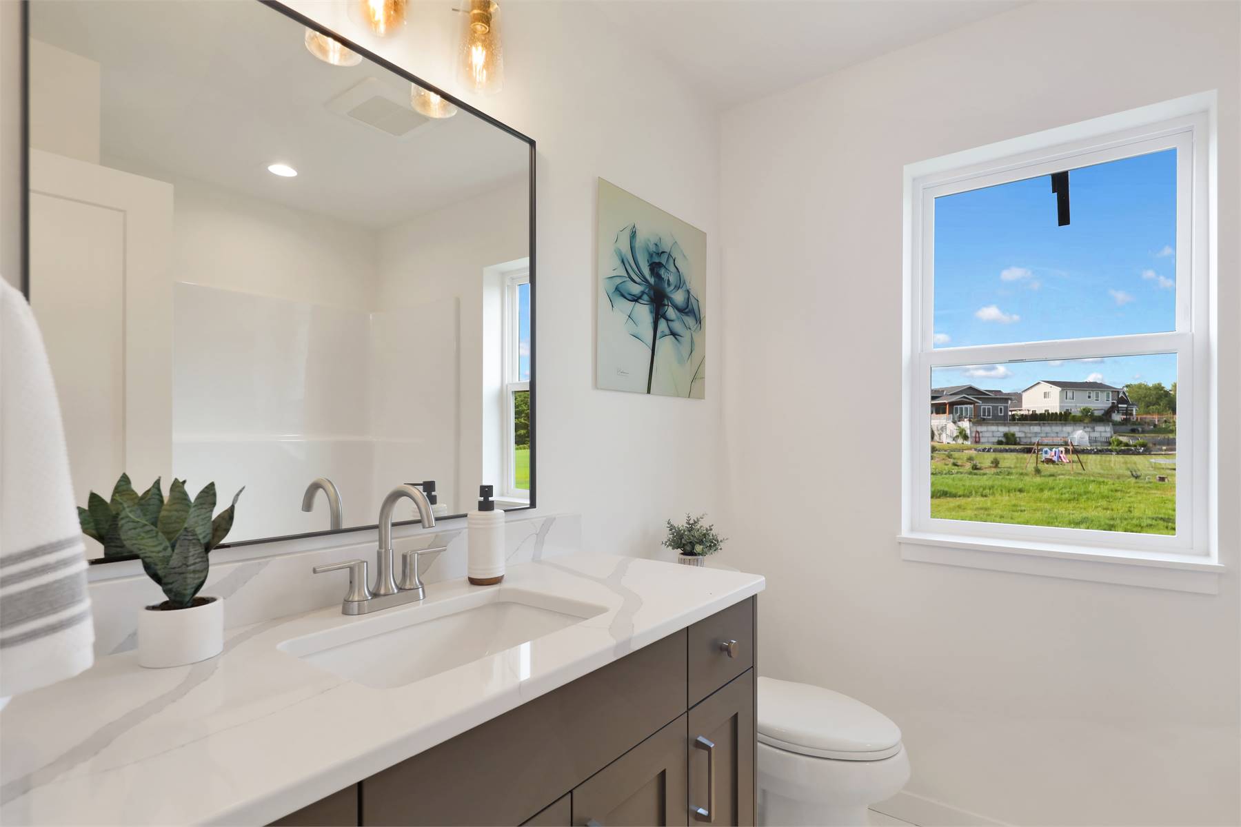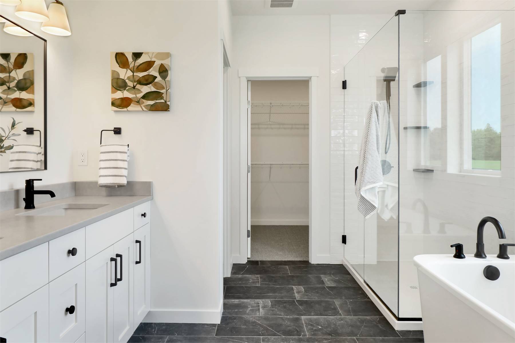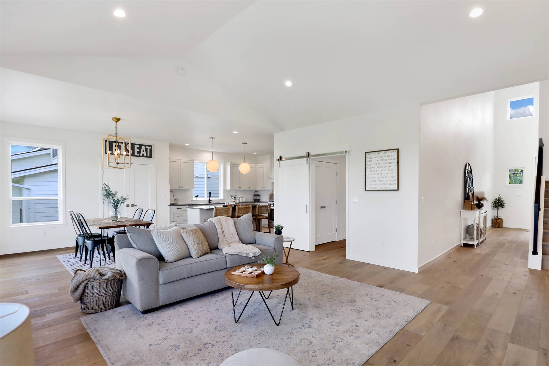 Enjoy this beautiful and contemporary farmhouse which is spacious and comfortable at 2,133 s.f. The first floor plan shows a great room, dining and kitchen open plan with vaulted ceilings which allows for free-flowing entertainment space. The large windows and sliding glass doors leading out to the rear deck will allow for alfresco dining. The master bedroom suite has dual sinks and separate water closet along with a very large walk-in closet. A first floor laundry and private office rounds out the main floor. The second level is where you'll find the large secondary bedrooms and bathroom.. The lower level is a walk-out basement which boasts a huge activity room that could be a media or entertainment space. The small kitchen area will help to make snacks readily available. The sliding glass doors allows access to the covered patio at the back of the home making access to the back yard easy. There is an optional/future space where you could add a bedroom and bathroom, making this perfect for the in-laws. This home is perfect for your growing family.