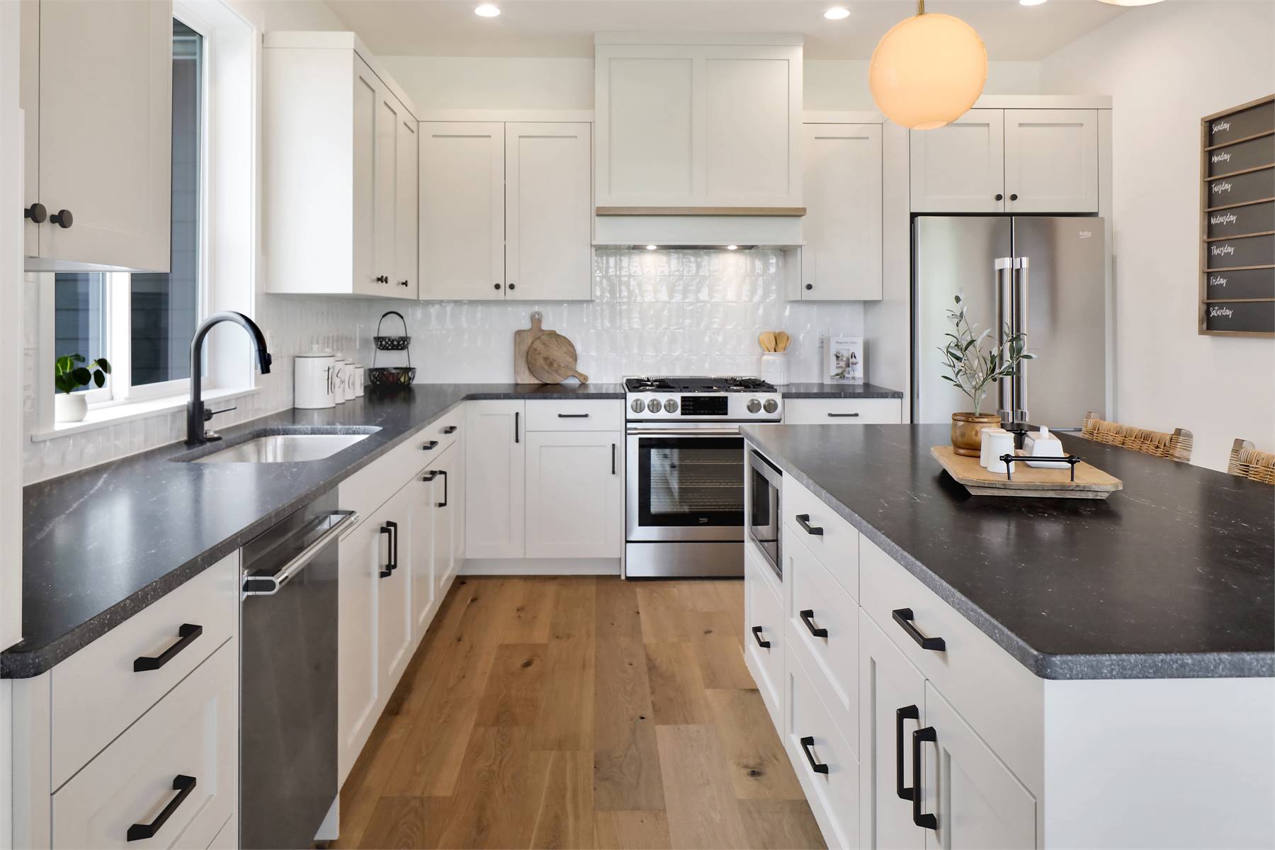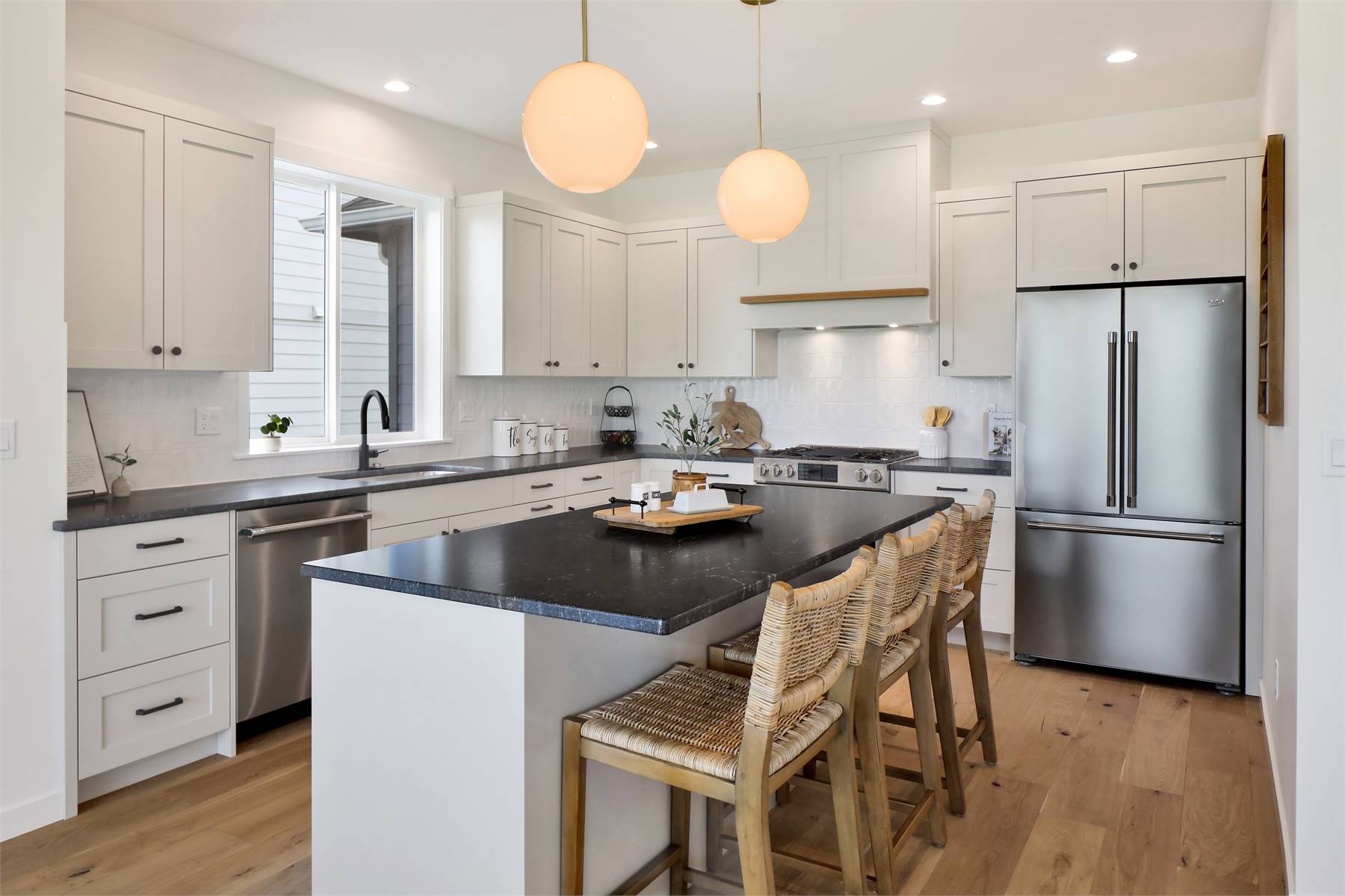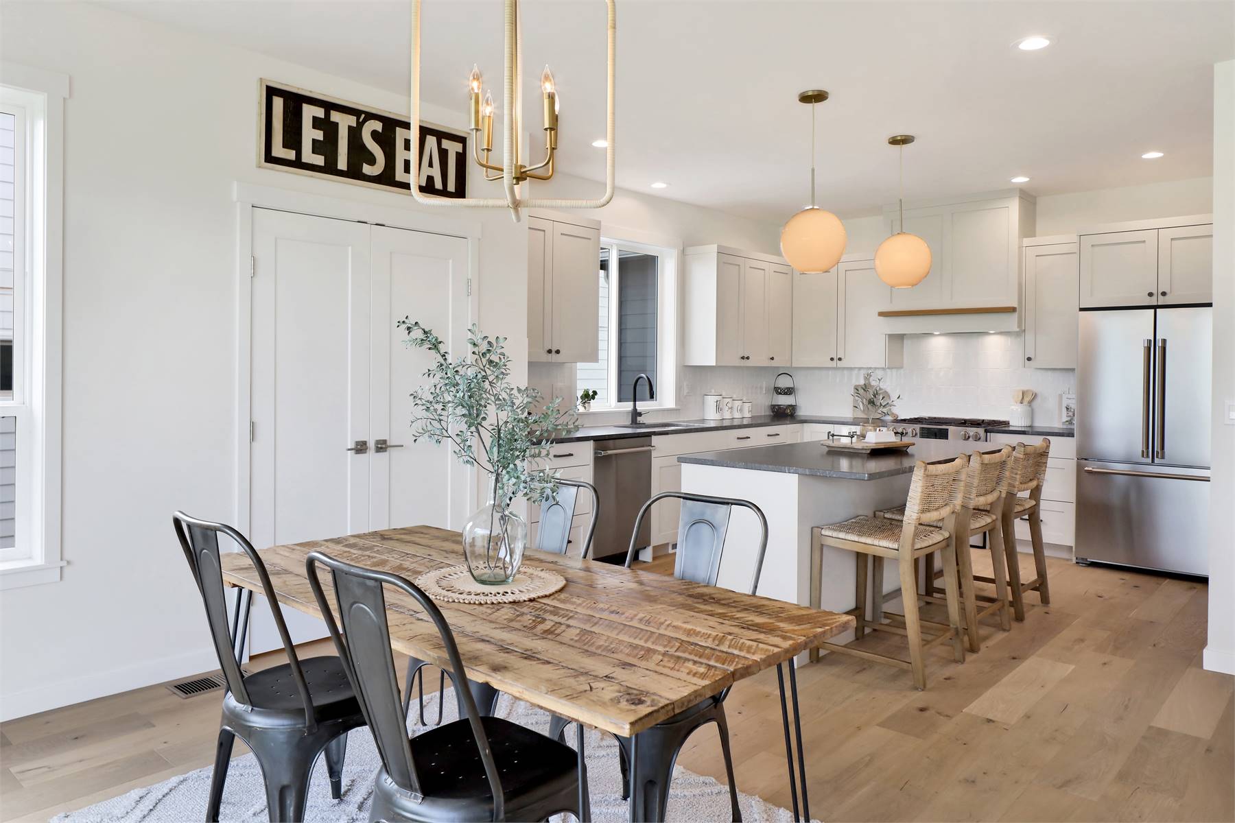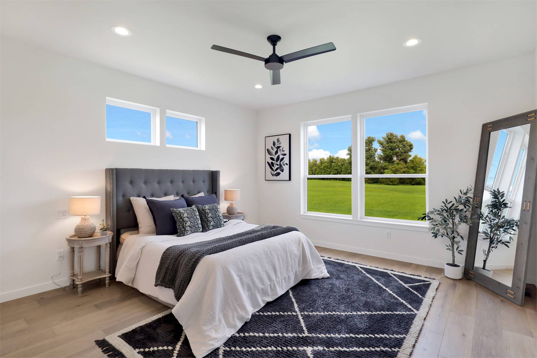 Enjoy this beautiful and contemporary farmhouse which is spacious and comfortable at 2,133 s.f. The first floor plan shows a great room, dining and kitchen open plan with vaulted ceilings which allows for free-flowing entertainment space. The large windows and sliding glass doors leading out to the rear deck will allow for alfresco dining. The master bedroom suite has dual sinks and separate water closet along with a very large walk-in closet. A first floor laundry and private office rounds out the main floor. The second level is where you'll find the large secondary bedrooms and bathroom.. The lower level is a walk-out basement which boasts a huge activity room that could be a media or entertainment space. The small kitchen area will help to make snacks readily available. The sliding glass doors allows access to the covered patio at the back of the home making access to the back yard easy. There is an optional/future space where you could add a bedroom and bathroom, making this perfect for the in-laws. This home is perfect for your growing family.