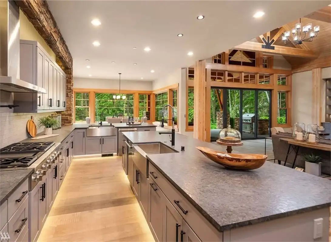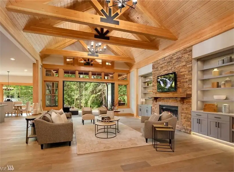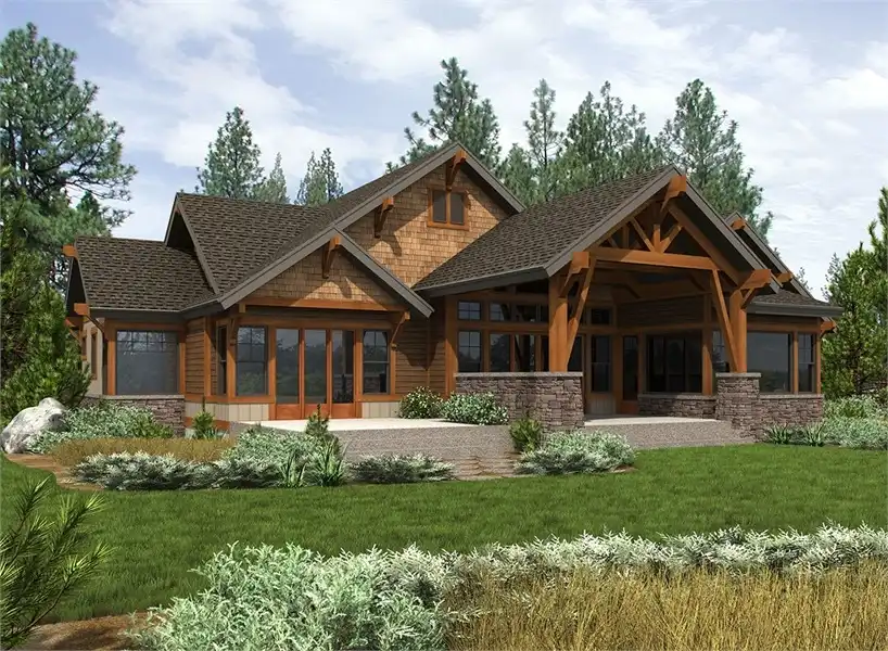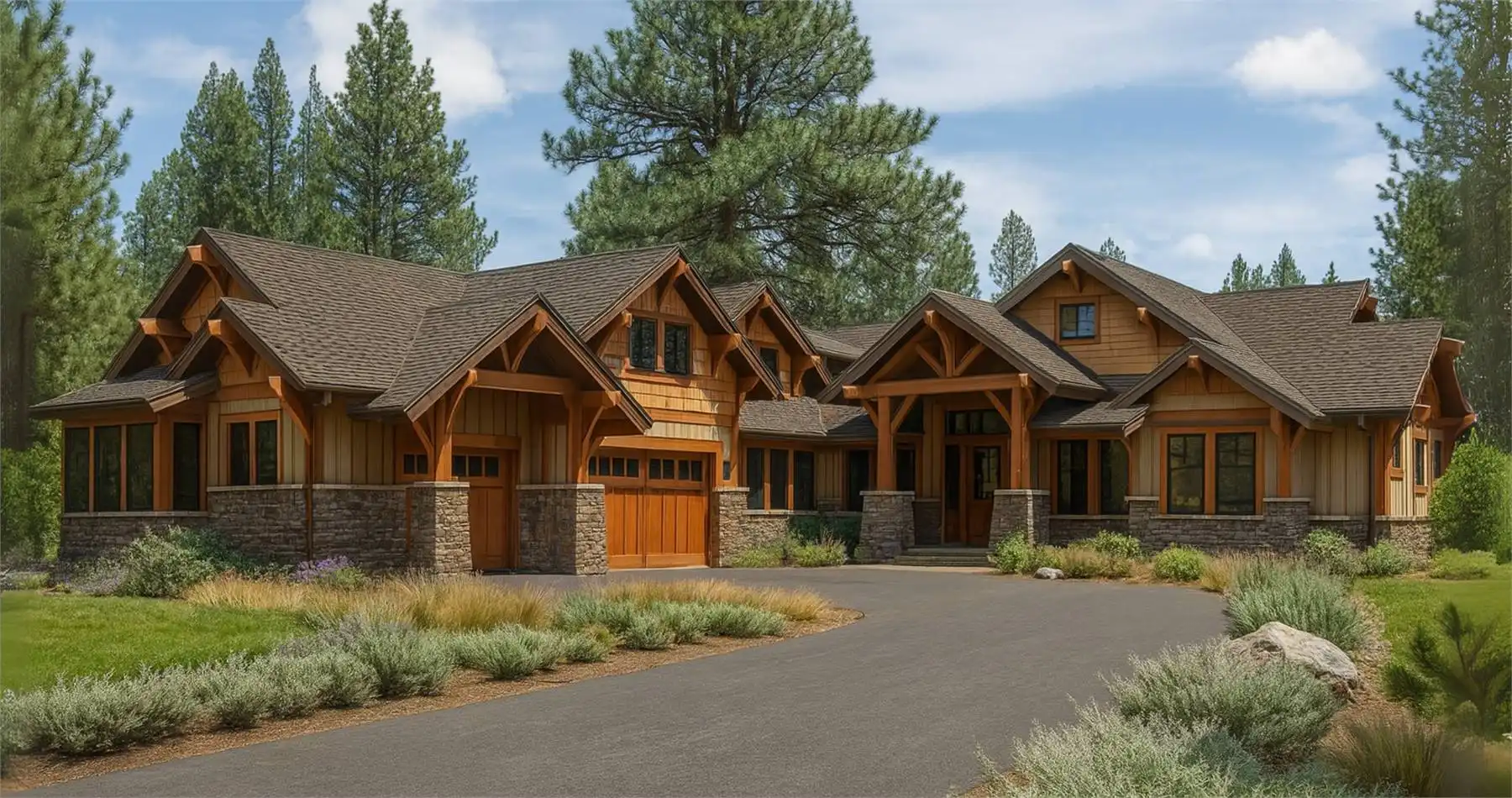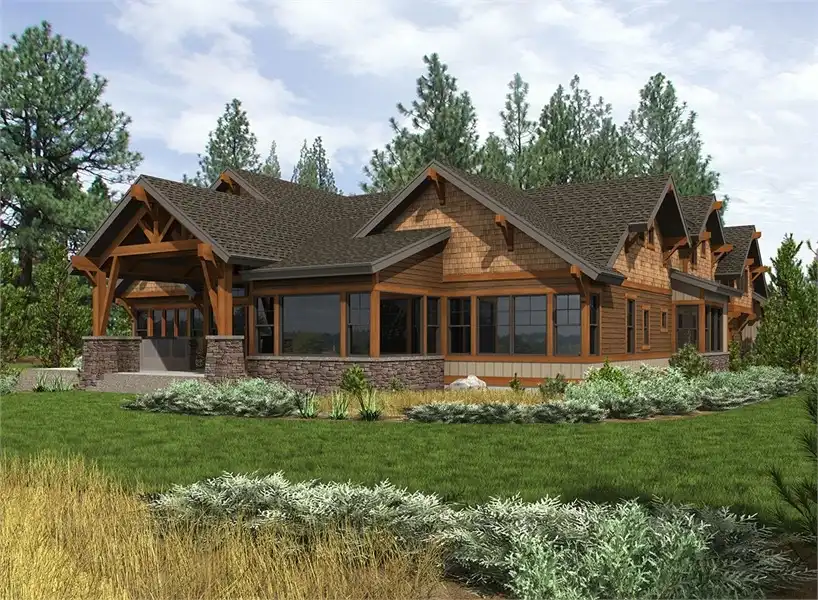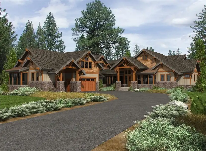 Spacious, stylish, and super open, this 4,620 square foot Craftsman cabin is a great option for vacationing or as a year-round residence. 4 beds and 4.5 baths are only the beginning with this impressive 2-story plan. Check out great spaces like the open vaulted family room, the gourmet kitchen and dining room, and even the huge back deck! You'll also enjoy all of the bedroom spaces, including the master with its luxurious spa retreat. And don't forget to explore the functionality of spaces like the 3-car garage with all of its added storage! Finally, move upstairs to discover a final bedroom along with a huge bonus room, great for all sorts of uses.