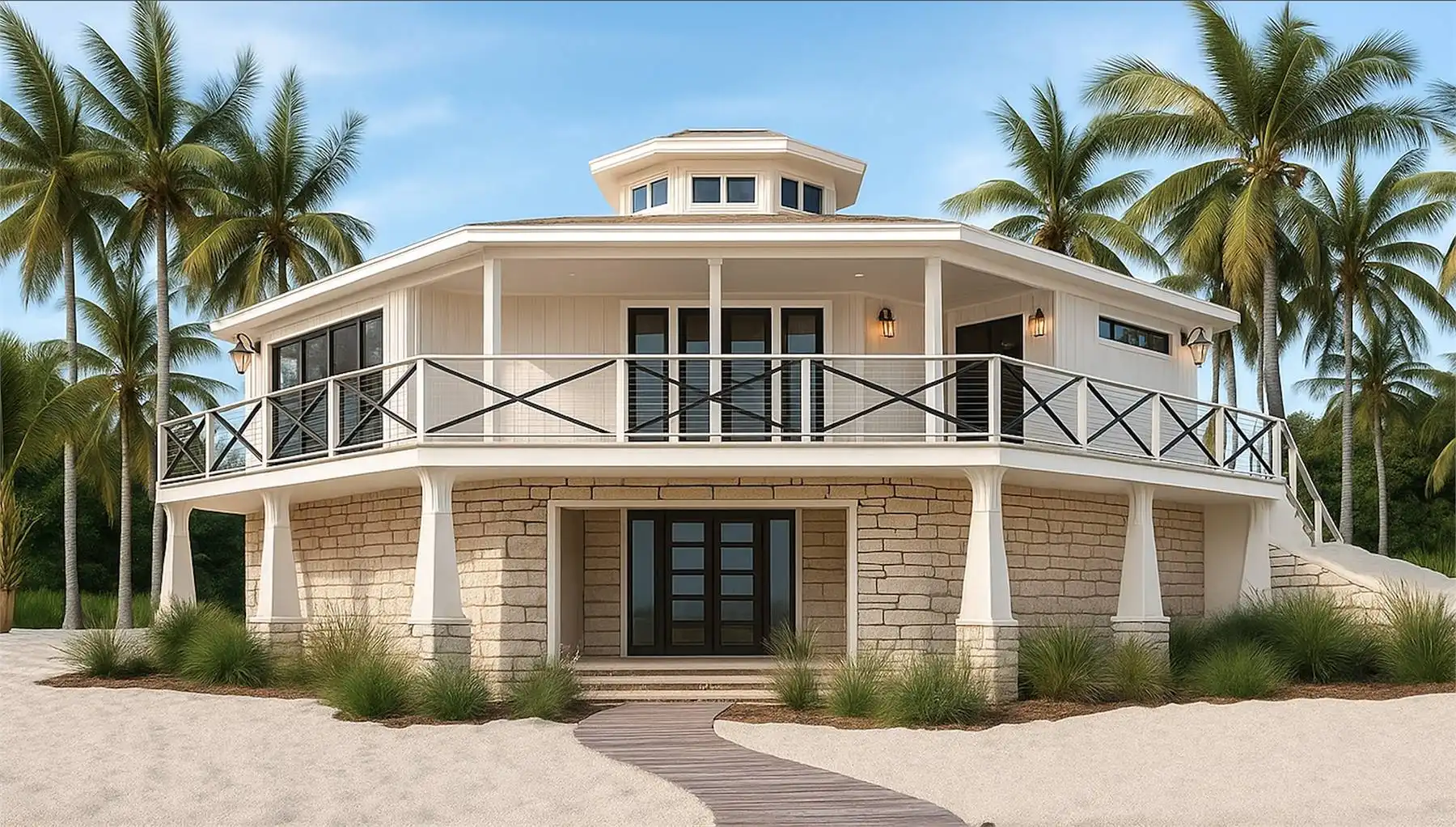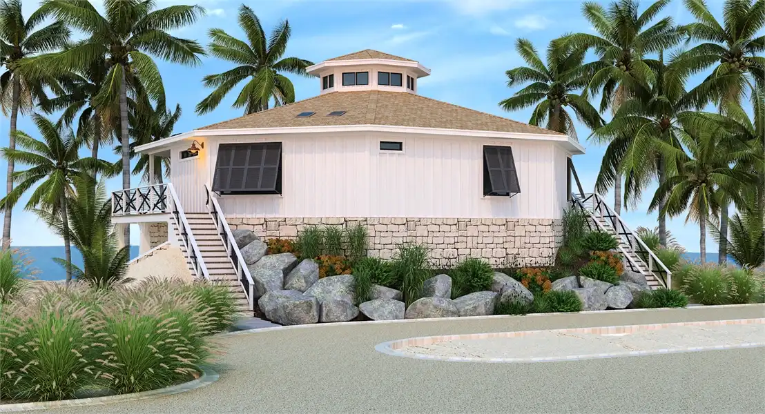 Have you ever seen an octagonal home? Well, with this 2,299 square foot modern plan, you now have! Beyond being super unique, this plan features tons of functionality, as well as virtually 360 degrees of unencumbered views. 3 beds and 2.5 baths are only the beginning of what this plan has to offer. Check out the open family room and eat-in island kitchen which are great for entertaining and feel totally open thanks to the natural light that comes pouring in. And what about that fully covered wrap-around porch with access from every room? This home sure does seem to have it all. But now you can upgrade it even more, thanks to the unfinished full walkout basement level, the perfect blank slate for you to add the 'cherry-on-top' of this already amazing home.