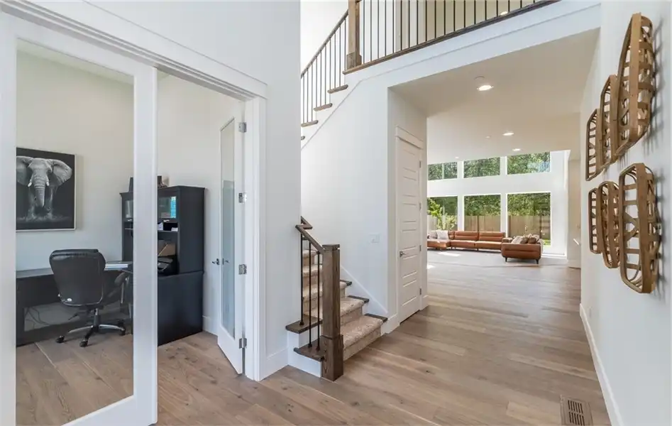 Grand spaces, amazing features, and hidden surprises all define this wonderful contemporary plan. Modeled as a modern take on a traditional family design, this 2-story home has it all and then some! 3,384 square feet offers 4 large bedrooms, along with other practical features like a private den/office. The main floor has so much to discover, beginning with the 3-car garage and nearby 2-story grand foyer. From there, the open concept layout spills out to reveal an impressive family room, dining room, and chef-inspired kitchen. Keep going to reveal your playroom, sitting room, and even your very own in-home sauna...how unique! Upstairs finds all of the sleeping quarters, including the master with its relaxing spa-style bath, as well as its large wardrobe.