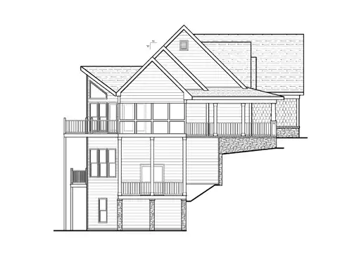 This inverted design boasts all the typical features of a traditional first floor, including a guest suite, a lovely sun room, and a very spacious back deck. The "second" floor is just inverted. It offers all the typical features of the average second floor, except you go down instead of up to access this level. This makes this floor plan perfect for a mountain lot, allowing full views and volume ceilings on the first floor. The lower level (2nd floor) features a 10-ft. ceiling throughout, and the dropped floor in the family room gives a dramatic ceiling treatment to this level as well.