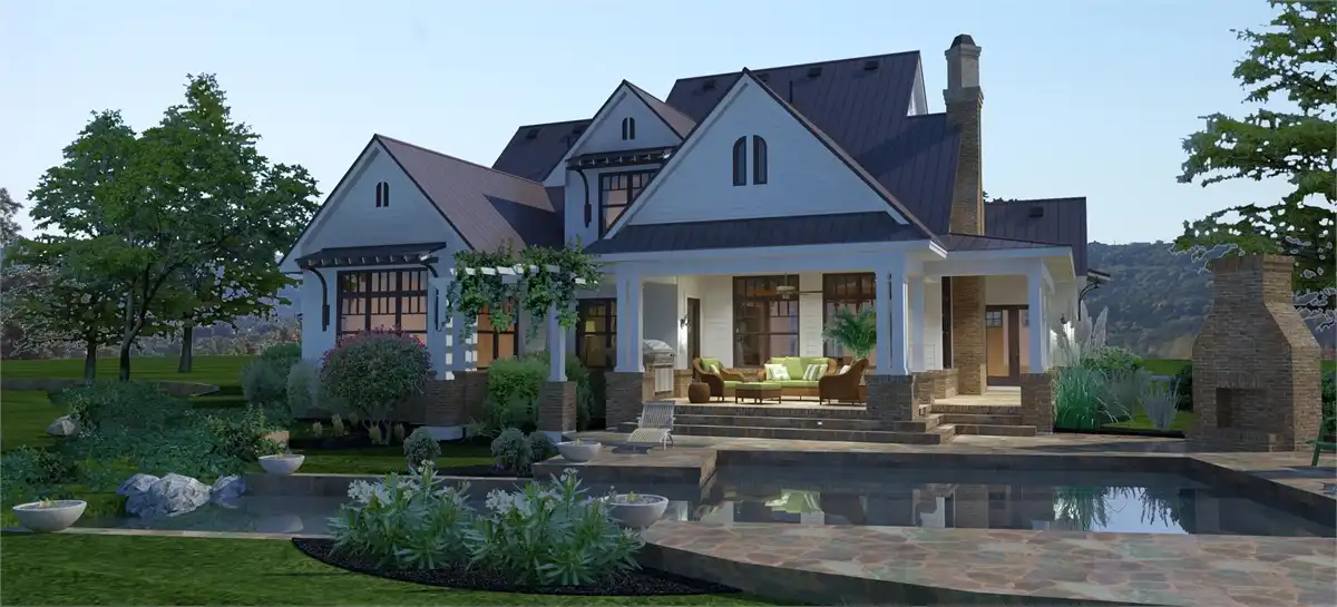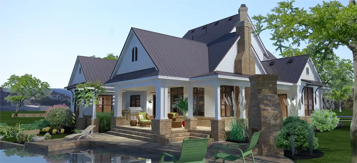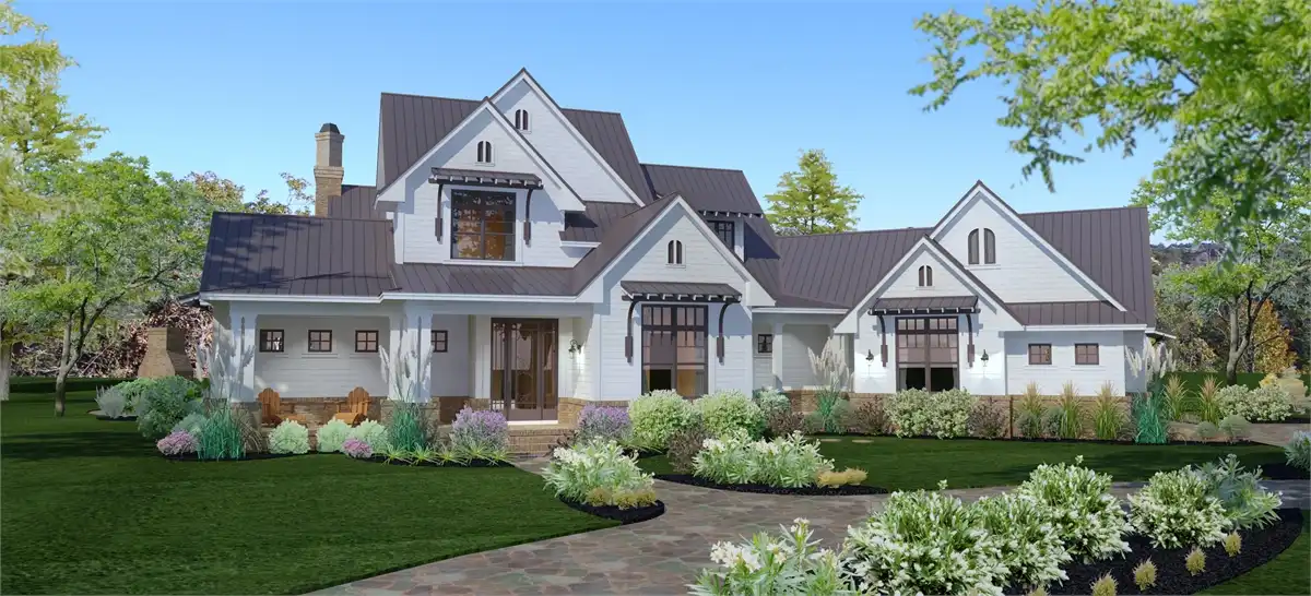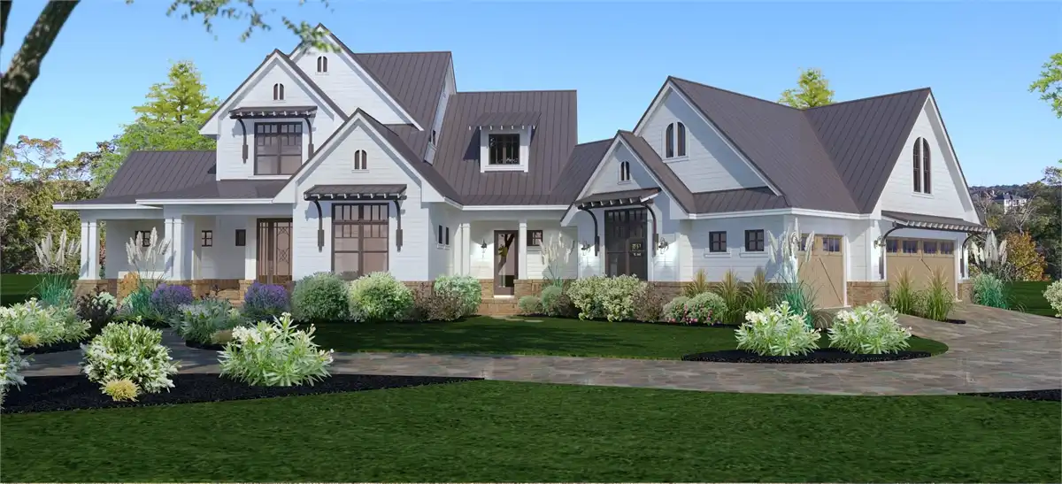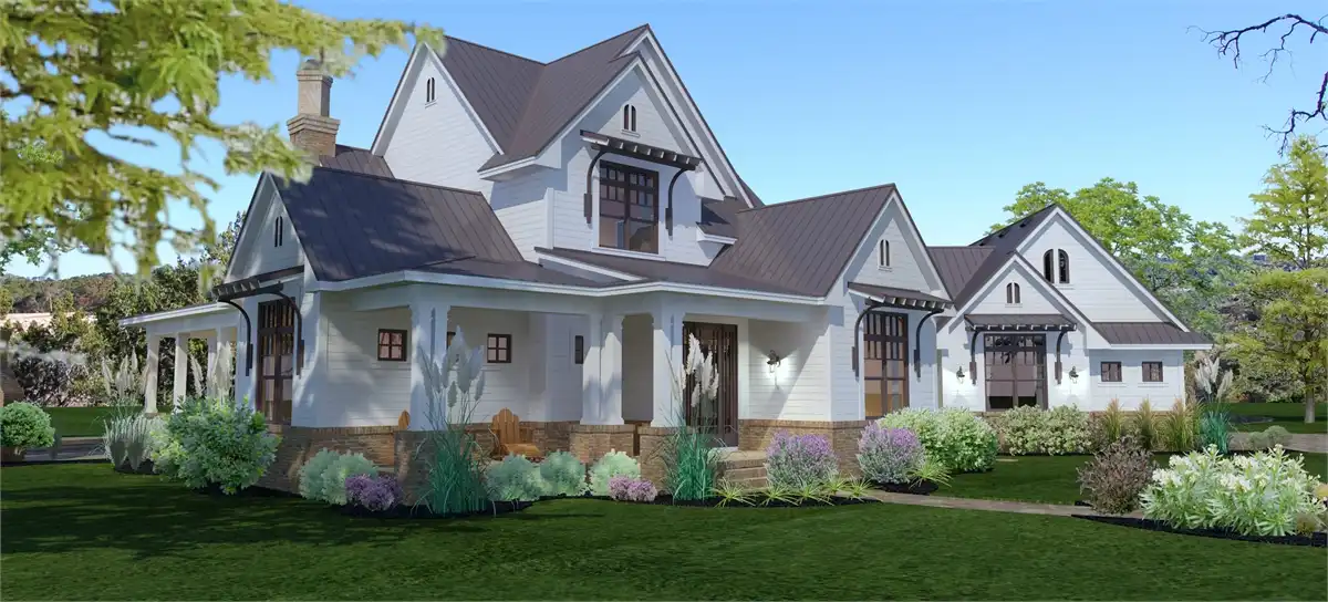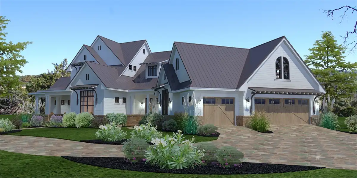 Prepare to have your breath taken away by the sheer beauty and functionality of this wonderful farmhouse plan. 2,984 square feet of living space is found within 1.5 floors, including 3 large bedrooms and 2.5 bathrooms. Check out some of this home's highlights, including the gourmet island kitchen with nearby 2-story family room, the master with one of the biggest closets that you've ever seen, and a 3-car garage with tons of storage space. You'll also enjoy the multiple covered porches as well as a private study and massive bonus room for the kids. Everything about this home is designed to ensure the maximum comfort and relaxation for you, the family, and guests.