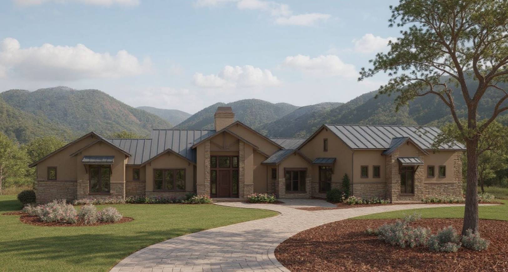 Check out House Plan 8690 if you're looking for a unique home with RV parking! This V-shaped Southwestern ranch offers 2,690 square feet with three bedrooms, three-and-a-half bathrooms, and a three-car garage with two single bays and an RV bay. The layout is designed around a corner great room with a centered fireplace. You'll find plenty of counterspace in the kitchen and room to dine and play in the dining and flex areas. The bedrooms are split on opposite sides of the house, with the luxurious primary suite near the garage while two smaller suites enjoy easy access to the laundry room.