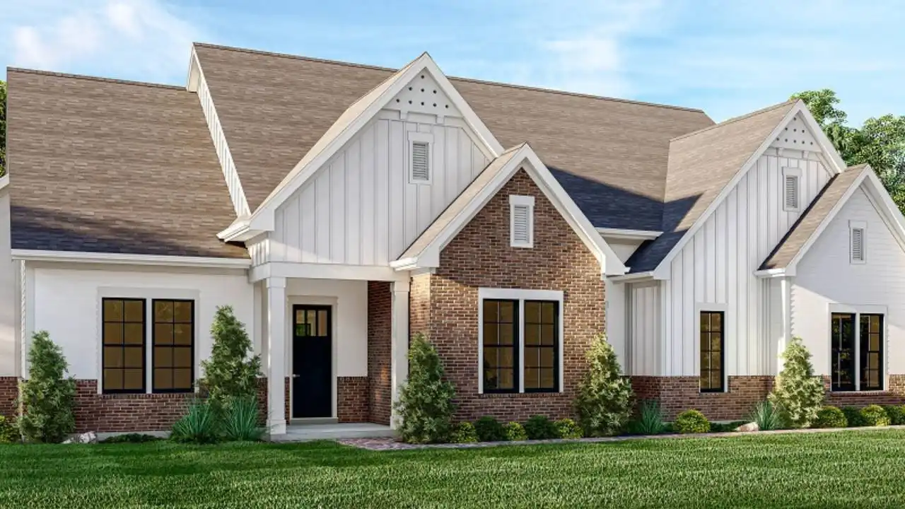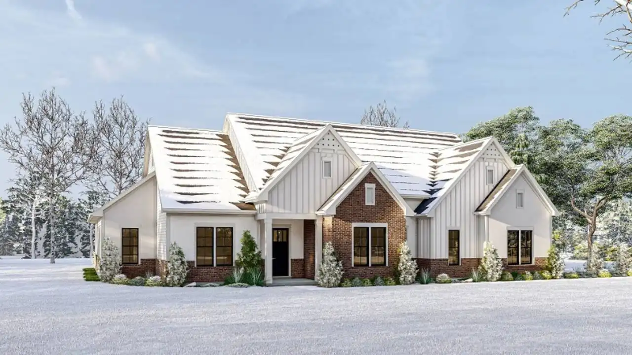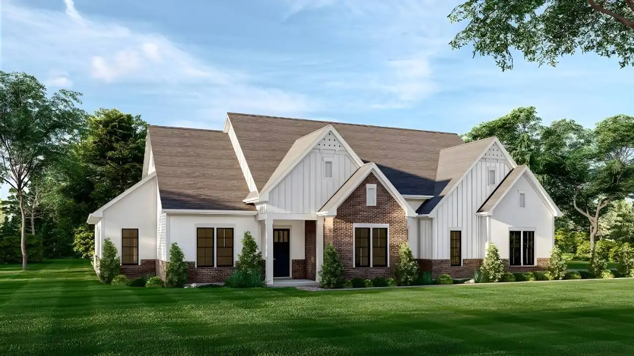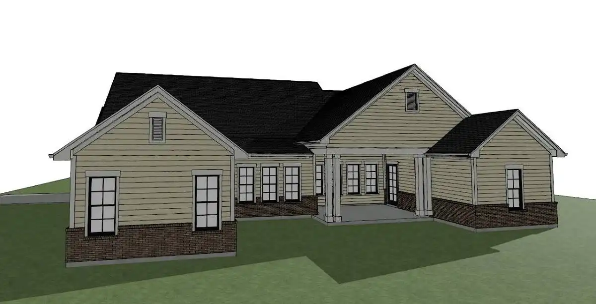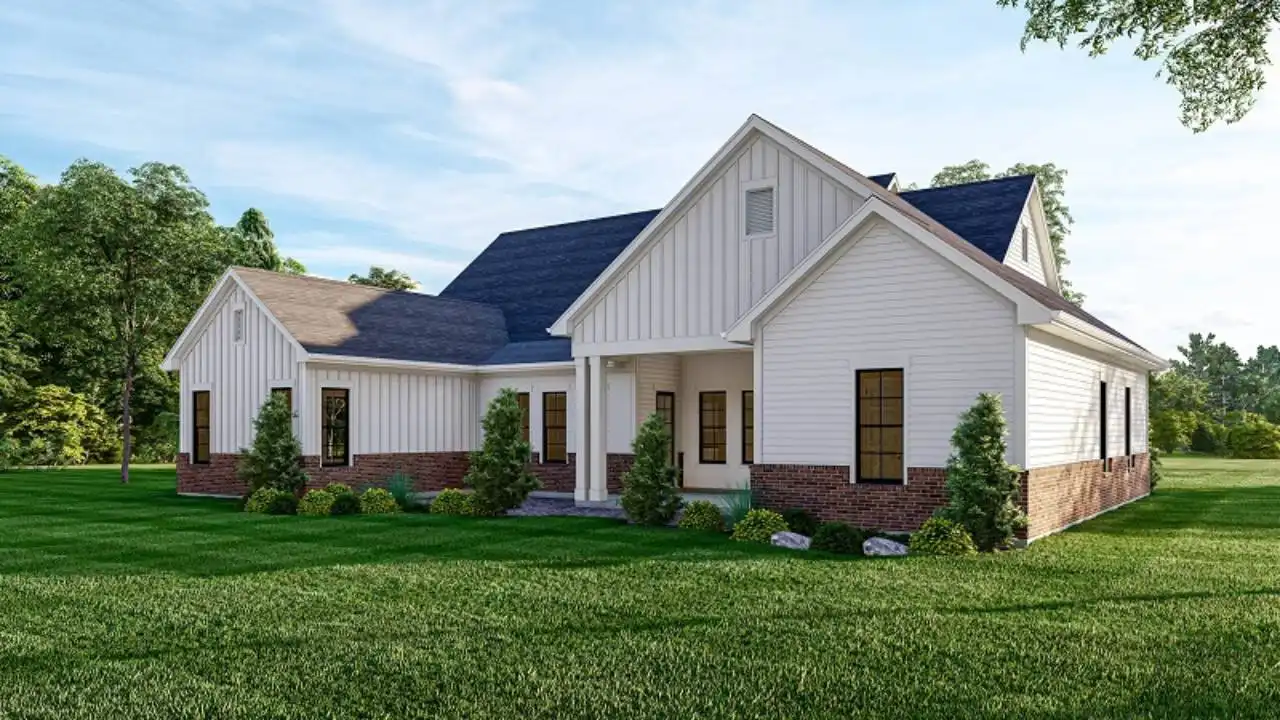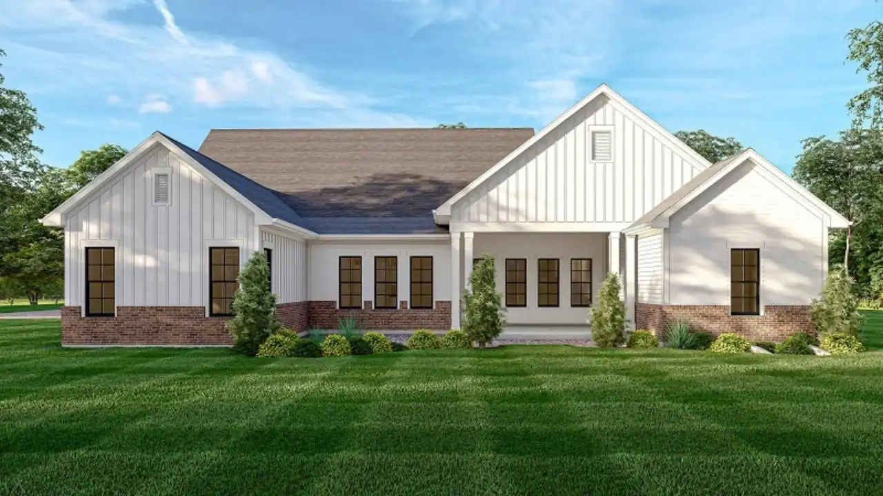 House Plan 8692 offers welcoming one-level living with a layout designed for both relaxation and everyday function. The heart of the home is the great room with a fireplace and views across the covered rear porch, ideal for seamless indoor-outdoor enjoyment. The kitchen offers excellent workspace, a walk-in pantry, and easy access to the casual dining area. A private primary suite occupies its own wing with dual vanities, a soaking tub, and a spacious walk-in closet. Two secondary bedrooms share a connected bath, forming a comfortable family or guest zone. A front study with high ceilings provides a bright work-from-home space, while the separate guest room near Bath 2 ensures hosting flexibility. The attached 2-car garage and practical utility spaces support everyday convenience.