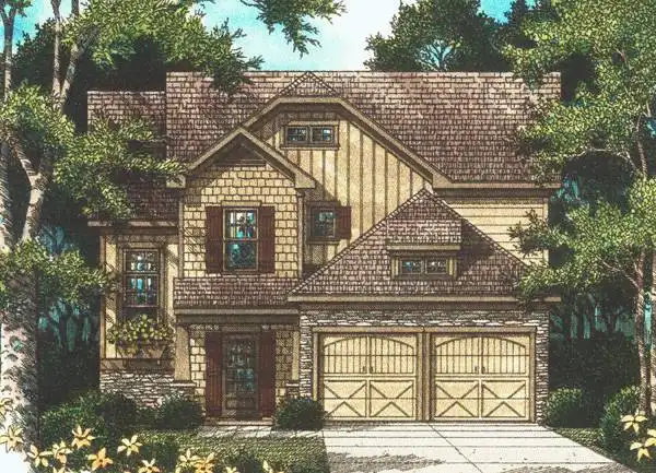 The open floor plan helps maximize the space in the modest two story plan. There is even room for a computer station outside the kitchen providing the perfect workstation for mom. The switch back staircase provides space for a large window to flood the foyer and upper landing with light. The master suite includes every amenity you would expect to find in a much larger plan.