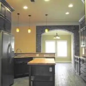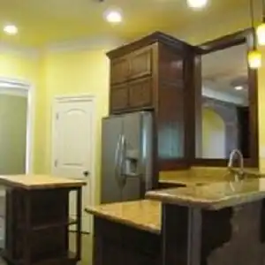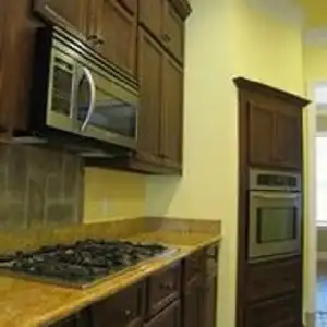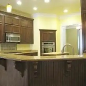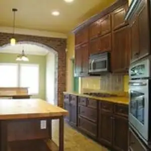 The large open Kitchen is home to a walk-in pantry, island and angled wall ovens. This open Kitchen/Great Room design makes entertaining family and friends much more enjoyable, the chef of the house will never feel left out. A raised snack bar creates the perfect spot for a quick snack.