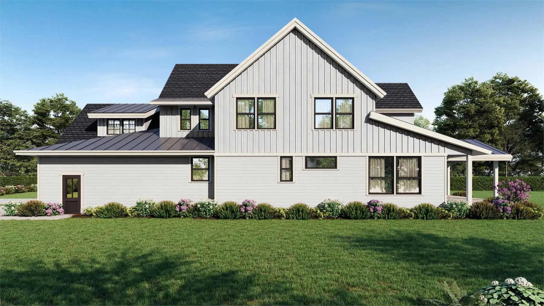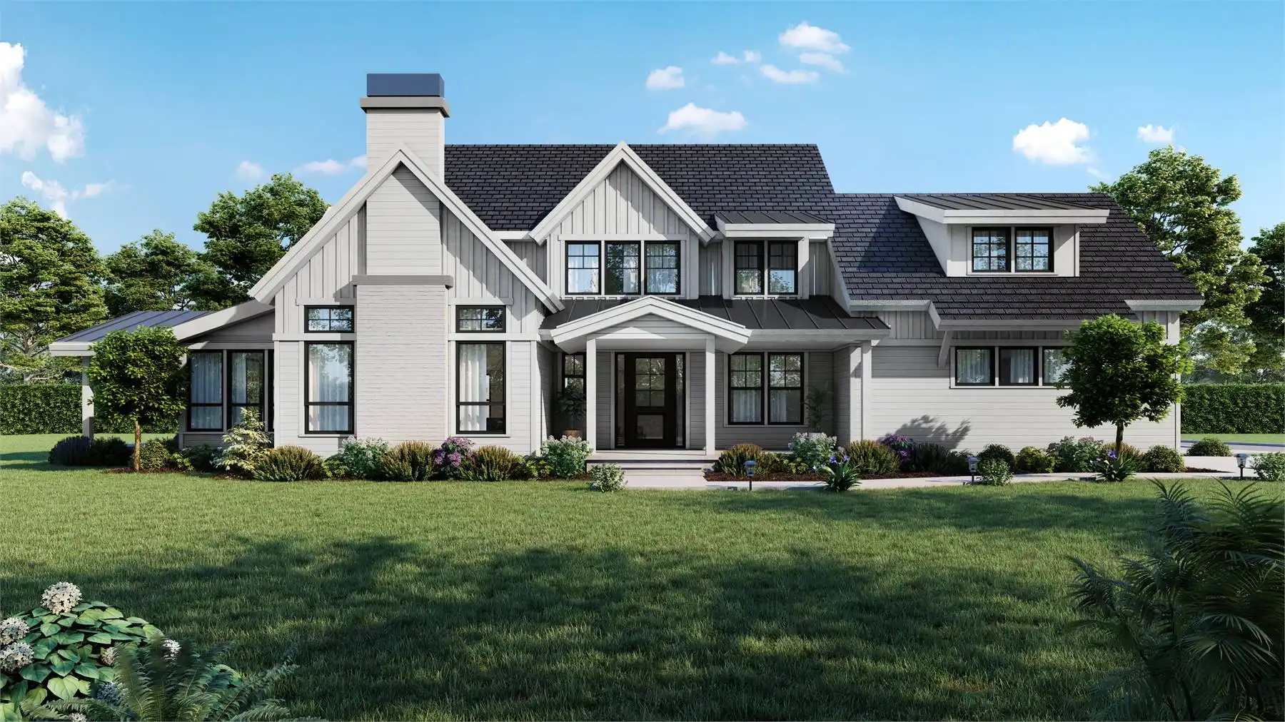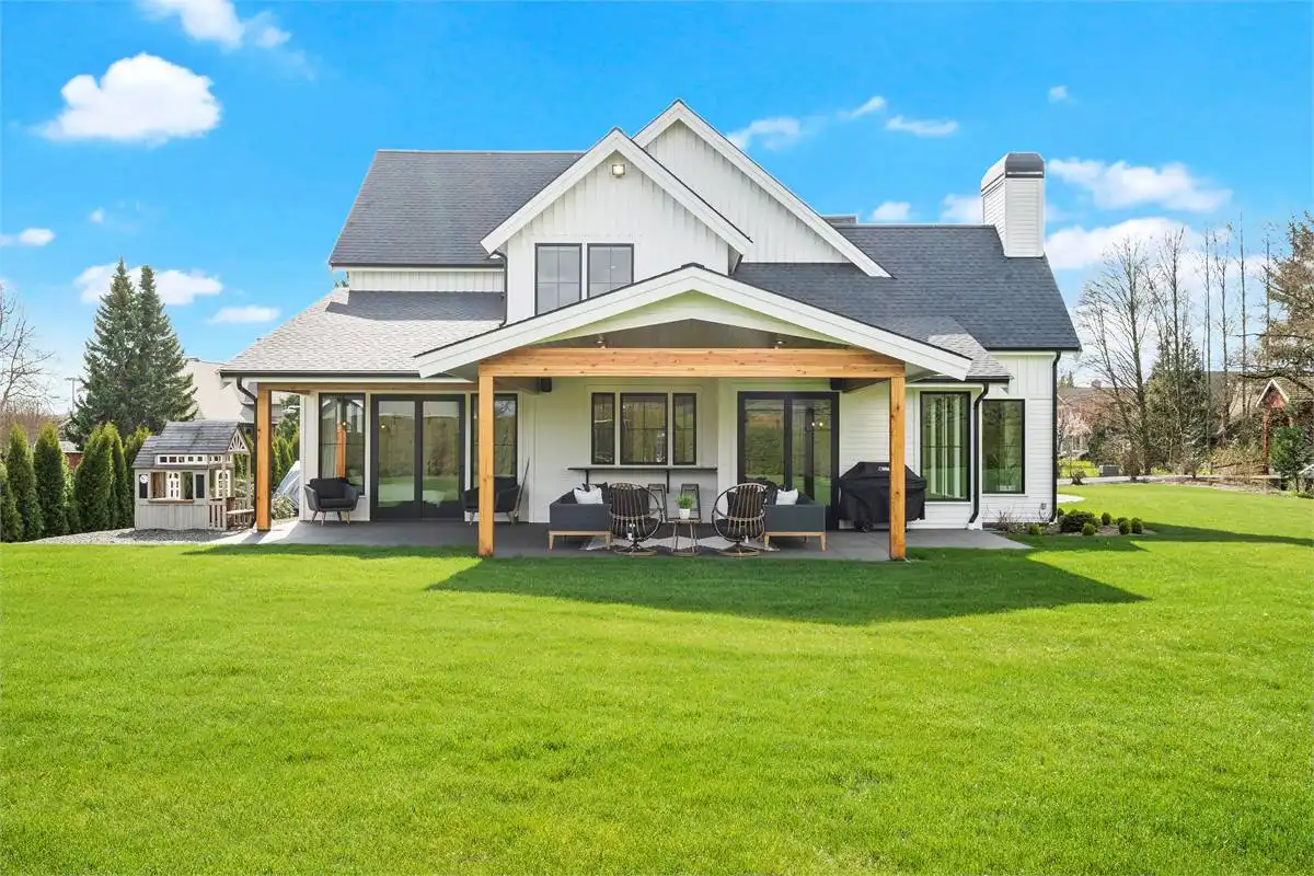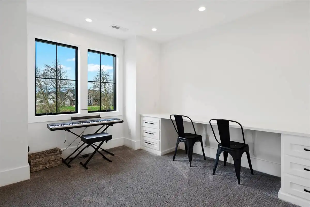 An expansive family plan packed full of surprises and style, this charming 2-story farmhouse has something for everyone. Starting with an open and inclusive 3,514 square foot layout, the 4 bed 3.5 bath home is great for families and guests of all ages and abilities. The main floor is totally open and flows throughout rooms such as the vaulted great room, formal dining room, and even a gourmet island kitchen. You'll also love the private office that is great for getting work done, as well as the first-floor master and dual covered patios. And don't forget that 3-car garage and all of its storage! Upstairs is equally as spacious, containing your auxiliary bedrooms, along with a bonus room and media room, the perfect places to put your unique finishing touches on this impressive home.